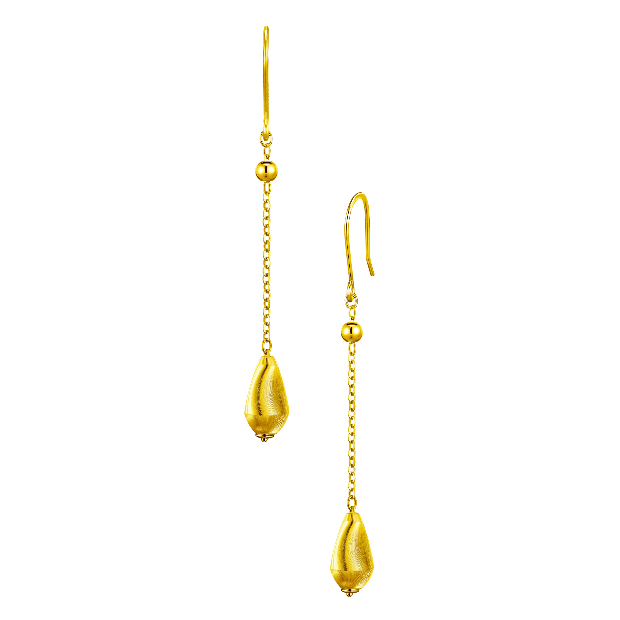 在清晨的时份,富含朝气与生命力的露珠从树叶上慢慢汇聚滴落,蕴藏了一天的美好,闪亮、精美而珍贵,仿如女性呈现出千娇百媚的绰约风姿,让人一见倾心。设计师将水滴状露珠的设计概念融入足金当中,搭配多种精致工艺,使优雅的露珠足金首饰更为闪亮,愿佩戴者温婉动人的形象深入人心。