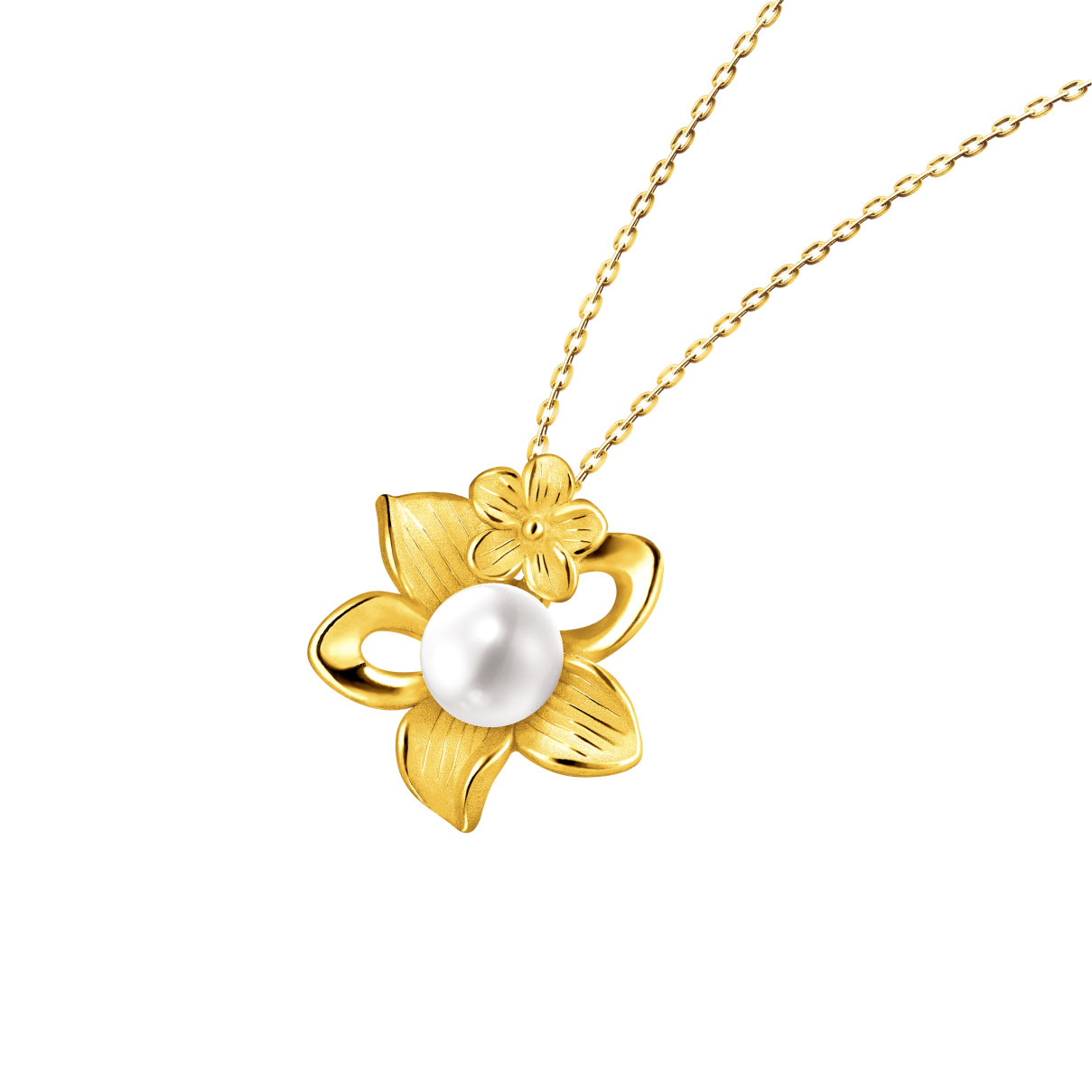 「珍」贵的东西不必费力寻找,因为它就在我们身旁。六福珠宝倾情为天下间的母亲特意打造的珍珠饰品,以鸡蛋花为设计灵感,让光金效果突显出优美花卉的线条,配以闪烁的钻石,如同绽放着母亲闪亮的爱;足金挂坠更巧妙地运用喷砂和哑光的工艺,令精致的造型更添层次感,整体造型简约大方,更能彰显出妈妈优雅迷人的美态,仿如母爱般珍贵。