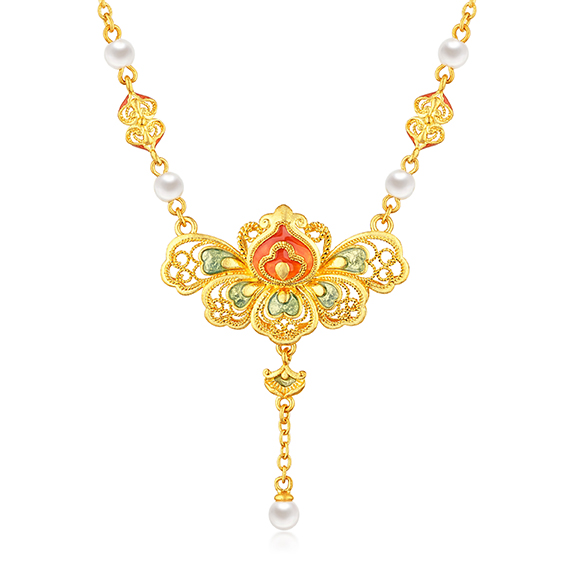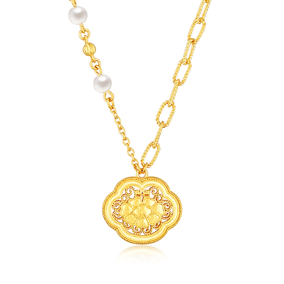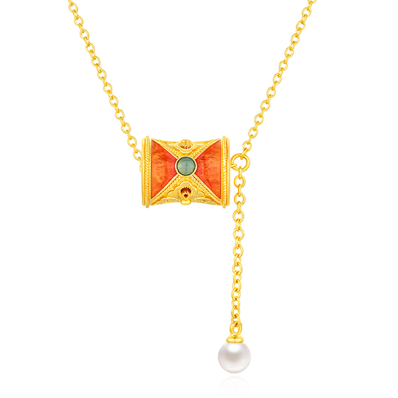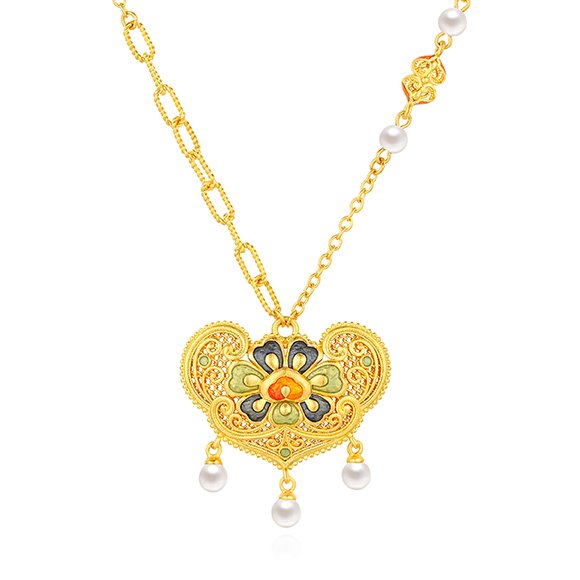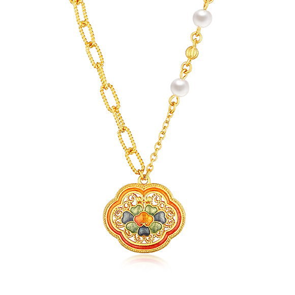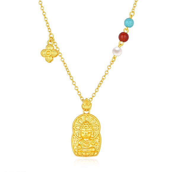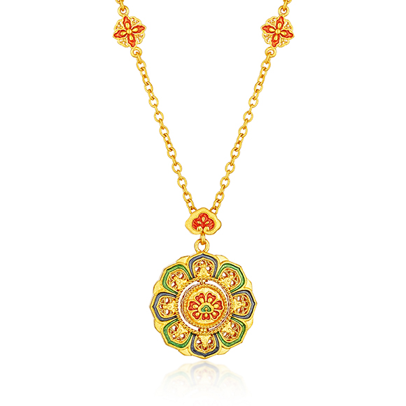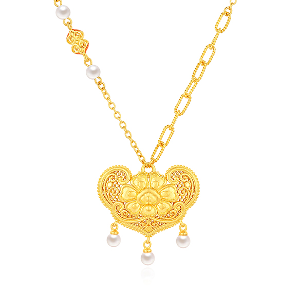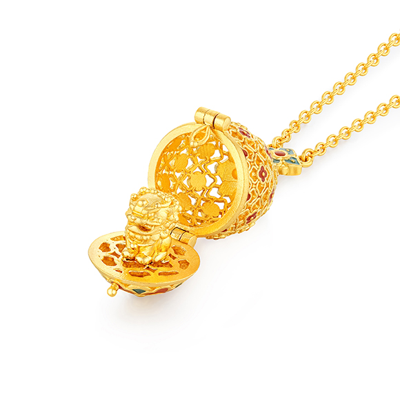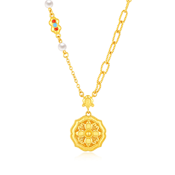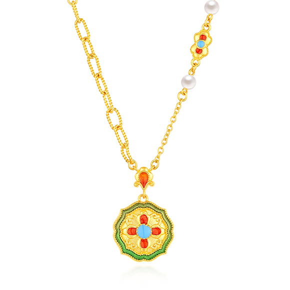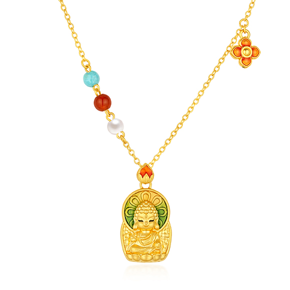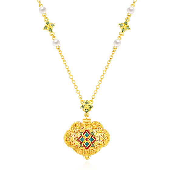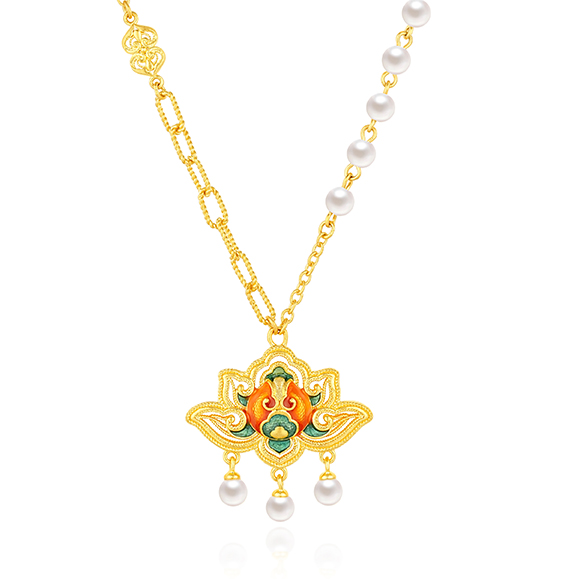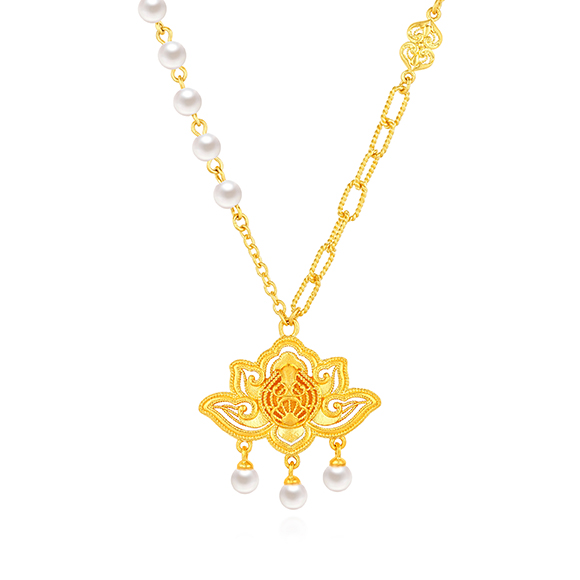 珠光华彩,金遇敦煌!于时光长河中,风采独具,于美学碰撞中,相融相生。全新「福满传家-敦丽金煌」系列,以黄金为媒,从精美浩瀚的敦煌壁画中汲取灵感,以祥纹、瑞兽及佛像为三大设计元素,打造精工雅致之作,多款项链和吊坠采用双面佩戴设计,兼具个性与搭配实用性,于细节之处,尽显匠心巧思。