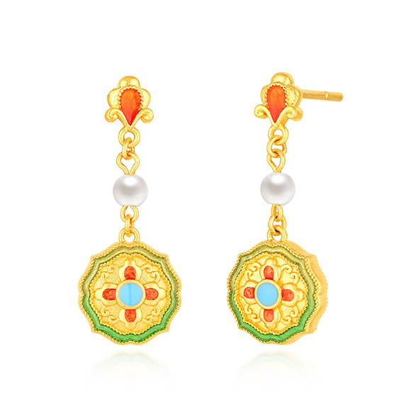 繁复绚丽的敦煌藻井纹,是惊艳世界的东方图腾,每一种图案都传递着吉祥、幸福的寓意。宝相纹尽显富贵圆满,石榴纹寓意多子多福,缠枝纹代表健康长寿。千变万化的各式敦煌纹样,在珠宝设计中重焕生机。以黄金辉映珐琅彩,再结合中心对称式的精妙构图,将中式美学别致呈现。