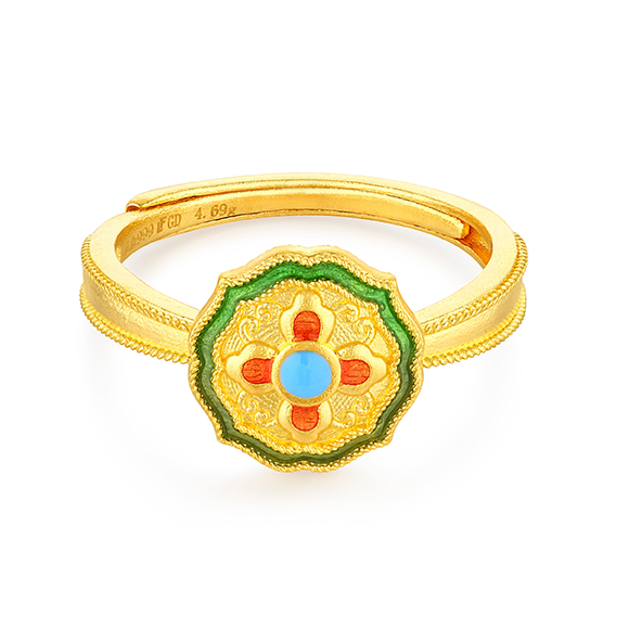 古道驼铃,丝路翩跹,梦入敦煌,一眼千年!神秘的敦煌是取之不尽的东方宝库,乐舞飞天、丹青画壁、万佛千像、色彩斑斓,步入艺术殿堂,邂逅敦丽金煌,感受文化的底蕴。全新「福满传家–敦丽金煌」系列,以华金鎏彩演绎大美敦煌,朱红青金、深浅不一,层次丰富。将敦煌文化和美好祝福融合为一,打造悦己赠礼、祈福求愿的传家珍宝。
