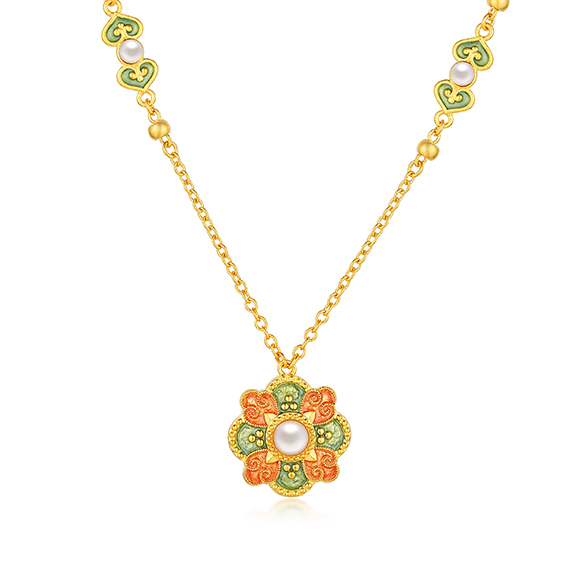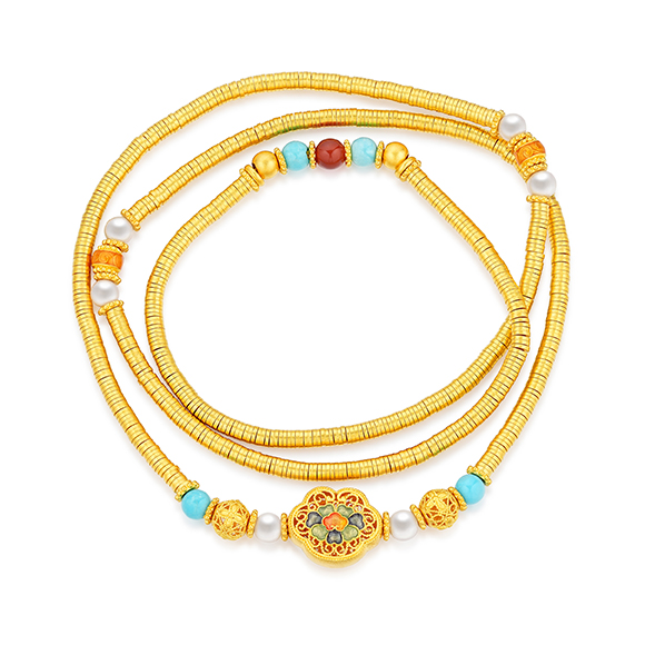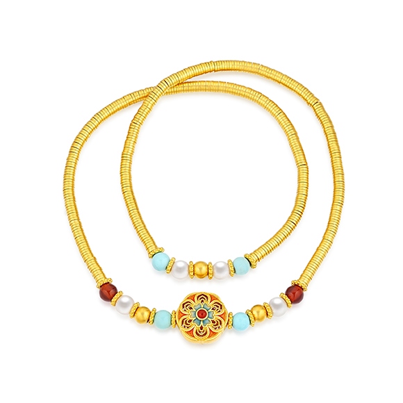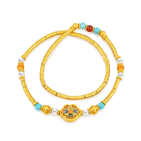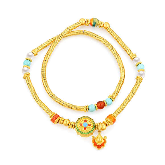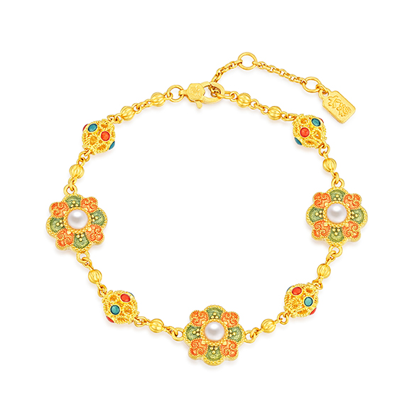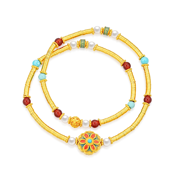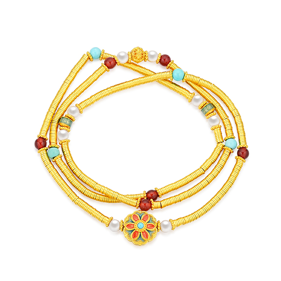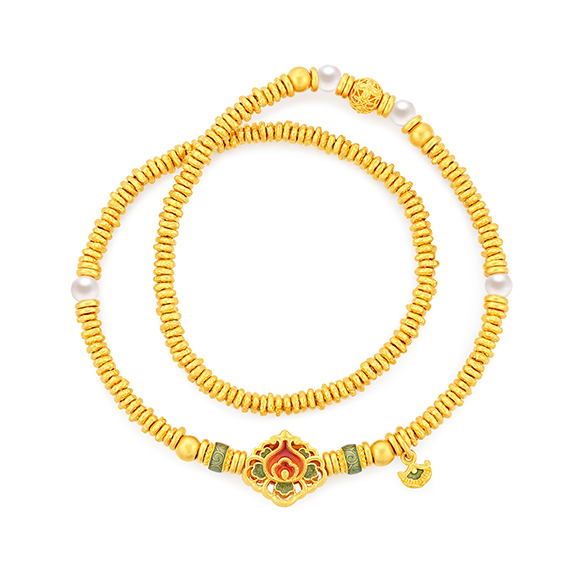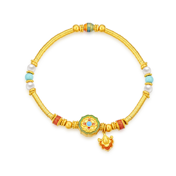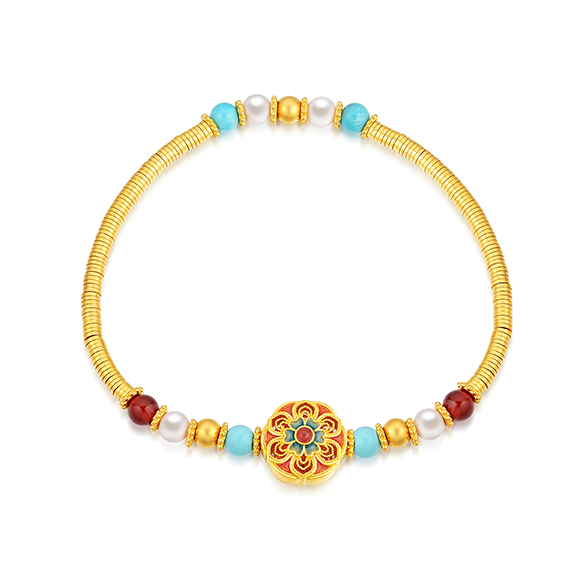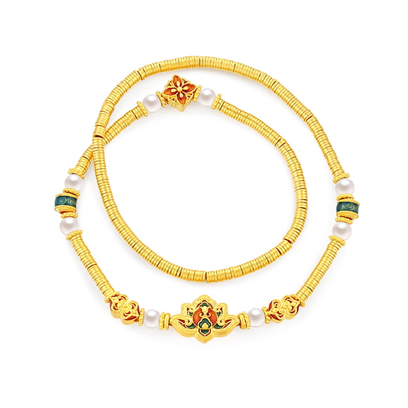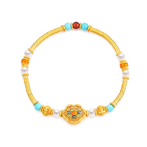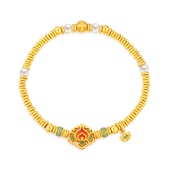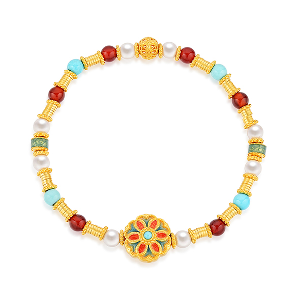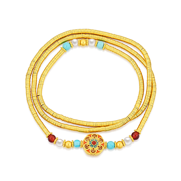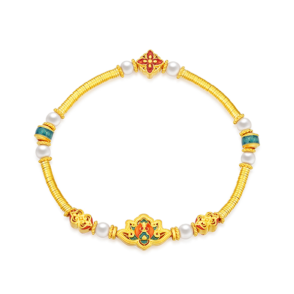 瑰丽茶花 祥花瑞彩,福意流传!金辉映茶韵,美好常相伴。绚丽珐琅和黄金的巧妙碰撞,伴以珍珠点缀,知性优雅,让东方美韵跨越时空,交融古今,每一件珠宝都凝聚了匠心与精湛工艺,让佩戴者感受来自敦煌的祝福!多圈款手链还可作项链一款多戴,满足多种穿搭需求。 |