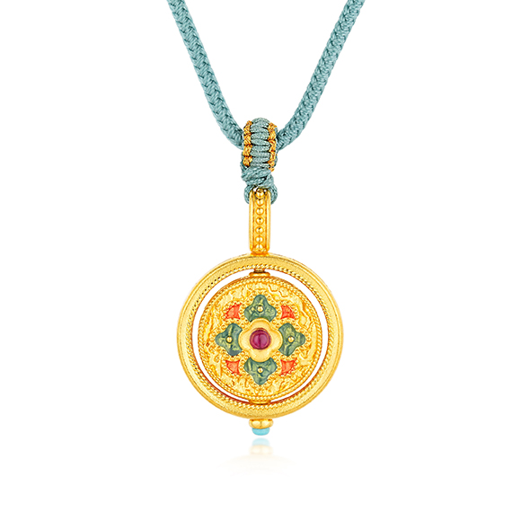 花开见佛 富贵花开,好运“莲”连!如意莲花纹呈六瓣宝相花造型,加以祥云纹作点缀,结合可转动内芯设计,寓意繁花似锦,福来运转!汲取朱砂、青绿、赭石、青金等满溢西域风情的独特配色,每一抹色彩都辉映着千年的风华。 |