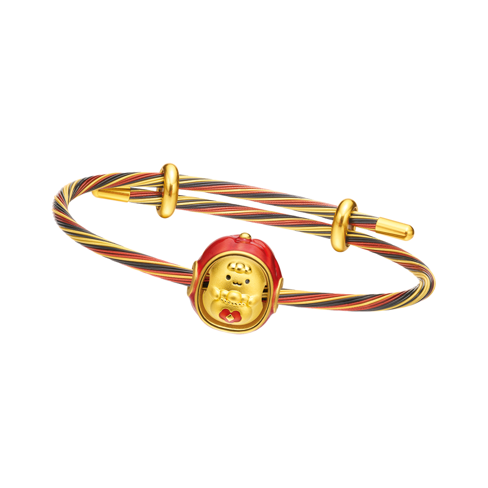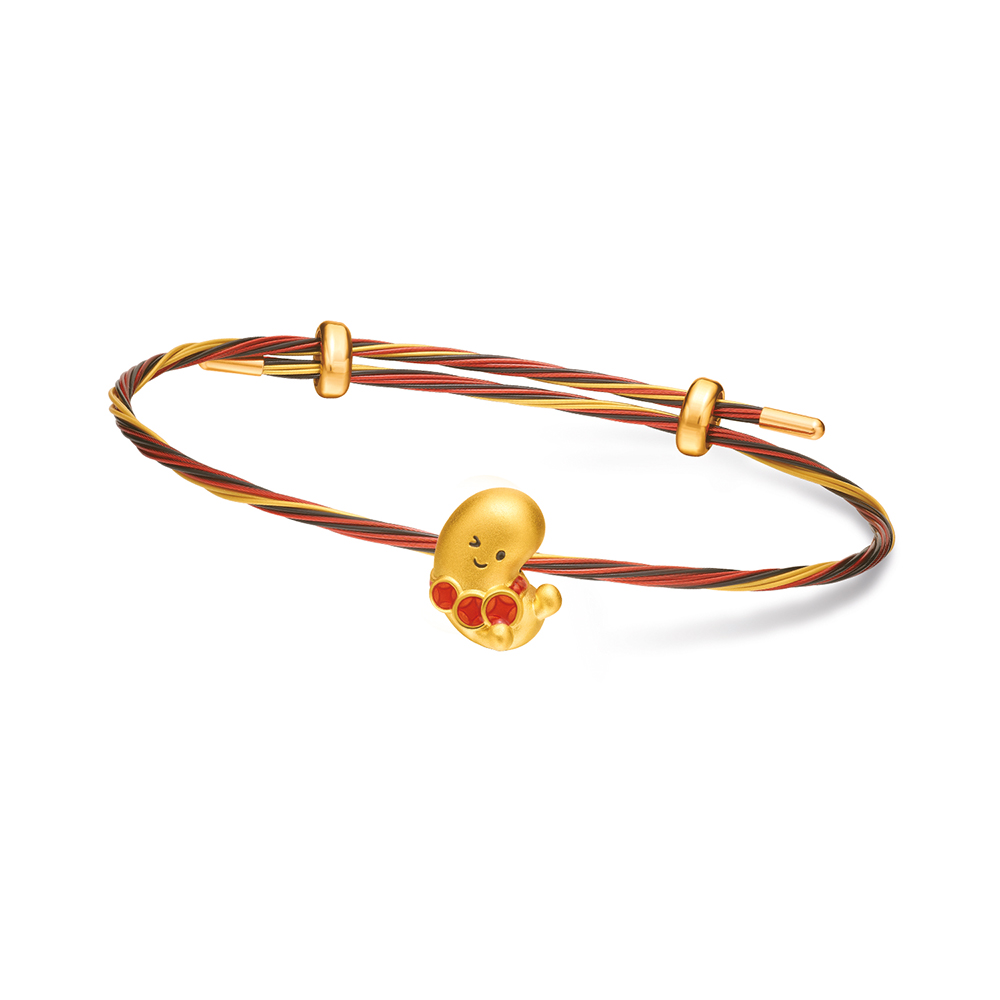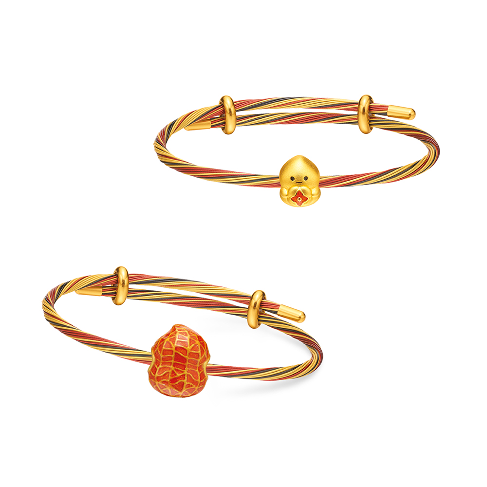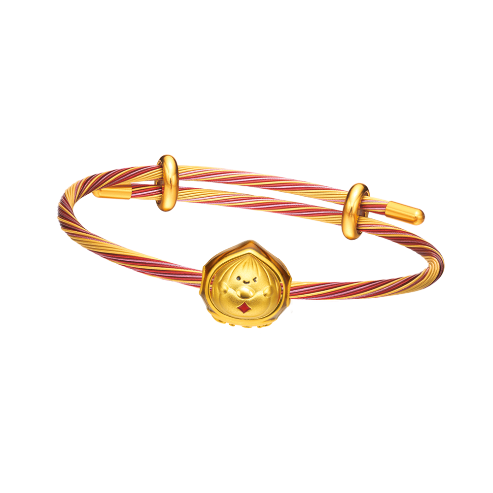 笑意甜甜的核桃宝宝手握粉嫩桃花萌力登场,陪你踏上和美与幸福的甜蜜之旅。粉晶也被称为“爱情之石”,浪漫柔美的淡粉色,寓意招桃花、促甜蜜、增人缘;明亮耀眼的黄塔晶元气满满,赋予阳光般开朗的自信与活力;结合象征智慧的核桃宝宝萌趣点睛,以一抹俏皮的金与活泼的跳跃色彩,瞬间融化少女心,提升温柔的魅力。生机盎然的桃运鎏光在腕间闪烁,愿这条可爱与正能量并存的手链,能让你将美满与好运牢牢“串”在手心。足金串饰另有手绳款,也可配链作项链佩戴,搭配顺从心意,让爱自然流转。愿爱逢其时,和乐美满。