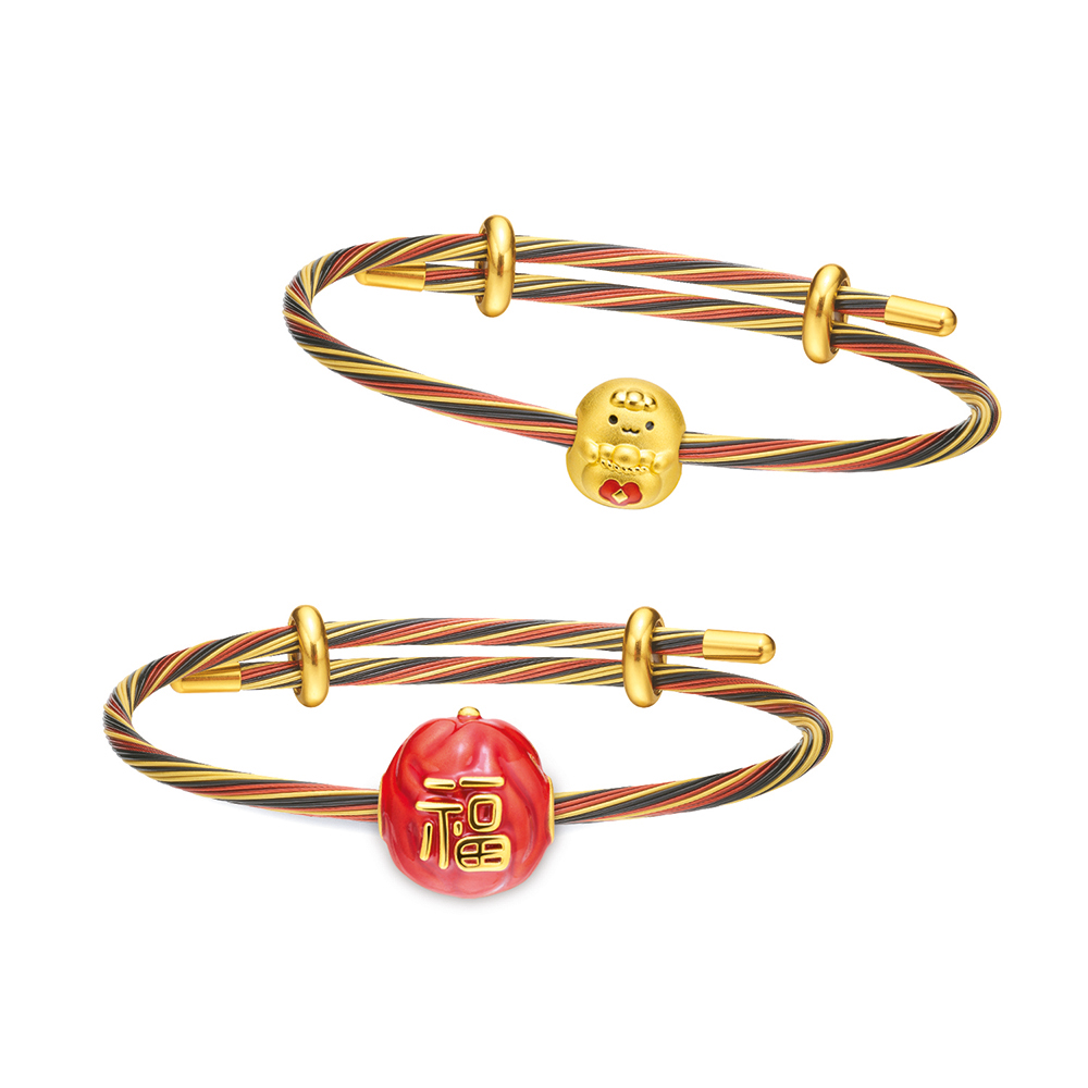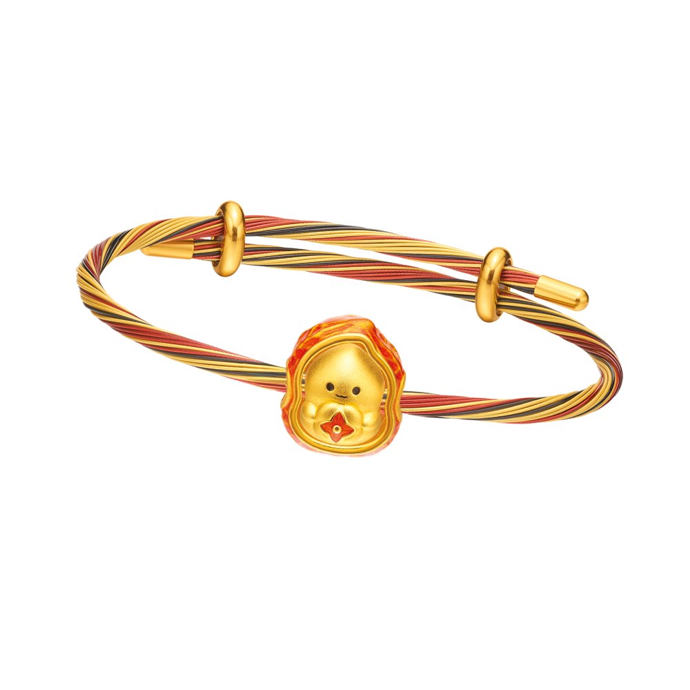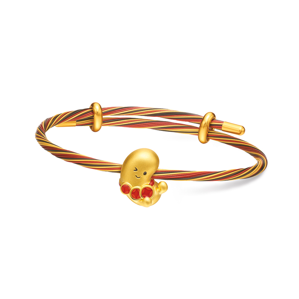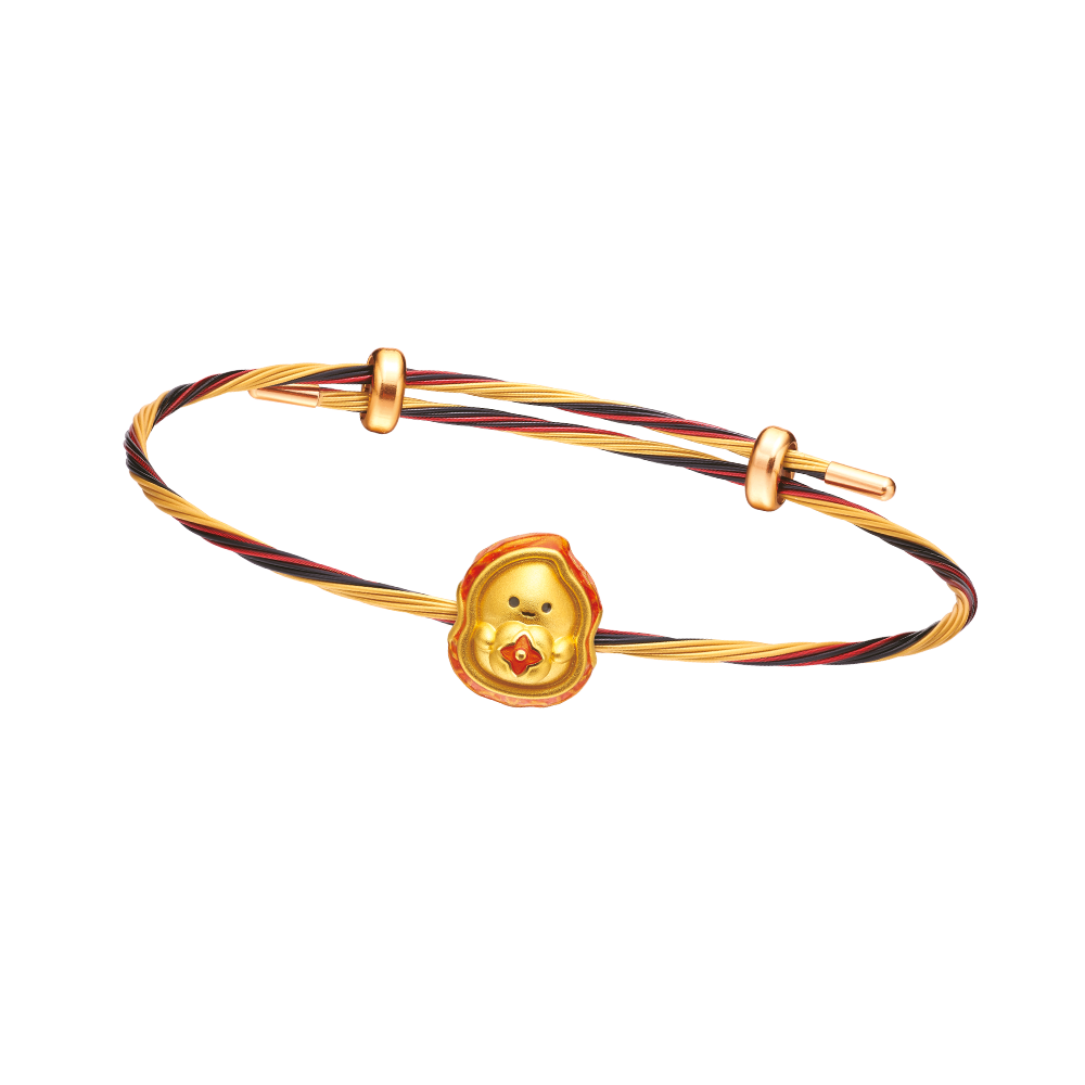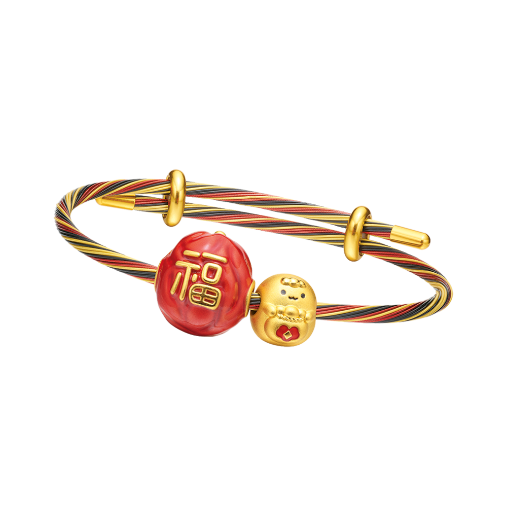 笑意甜甜的核桃宝宝手握粉嫩桃花萌力登场,陪你踏上和美与幸福的甜蜜之旅。粉晶也被称为“爱情之石”,浪漫柔美的淡粉色,寓意招桃花、促甜蜜、增人缘;明亮耀眼的黄塔晶元气满满,赋予阳光般开朗的自信与活力;结合象征智慧的核桃宝宝萌趣点睛,以一抹俏皮的金与活泼的跳跃色彩,瞬间融化少女心,提升温柔的魅力。生机盎然的桃运鎏光在腕间闪烁,愿这条可爱与正能量并存的手链,能让你将美满与好运牢牢“串”在手心。足金串饰另有手绳款,也可配链作项链佩戴,搭配顺从心意,让爱自然流转。愿爱逢其时,和乐美满。
