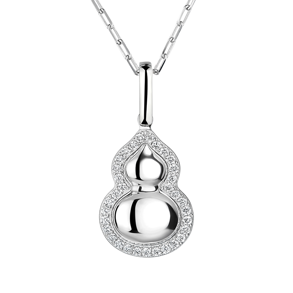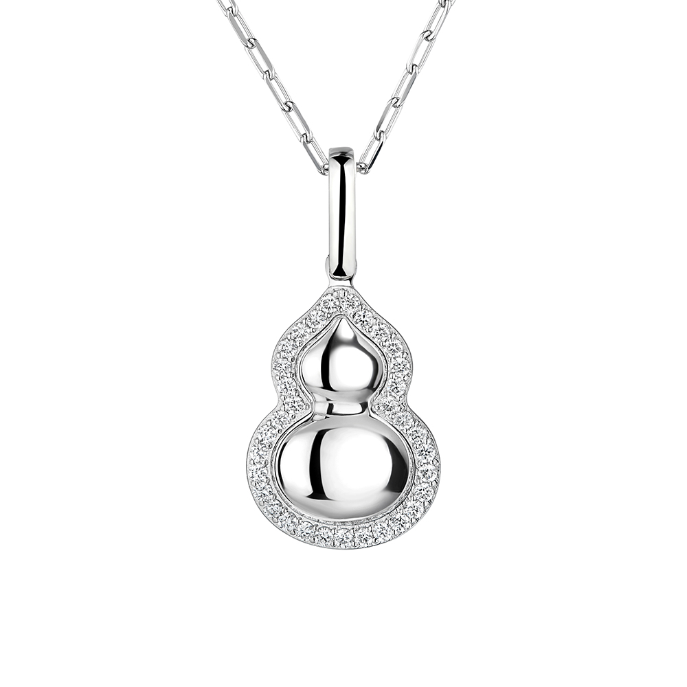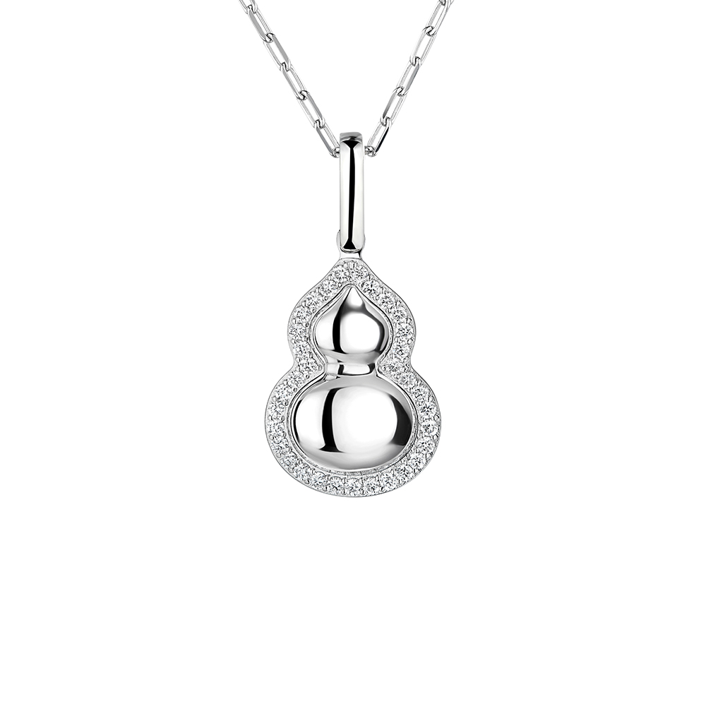 铂金的冷冽质感与葫芦的饱满曲线相映成趣,外轮廓镶嵌一圈璀璨天然钻石,凸显铂金与钻石相映的闪耀效果,既有东方祥瑞的文化底蕴,又有现代珠宝的时尚质感。吊坠有大、中、小不同版本以供选择,同款葫芦亦贴心地推出简约无钻款式,满足多种需求,随着佩戴者流转熠熠光芒,随心演绎你的摩登风范。