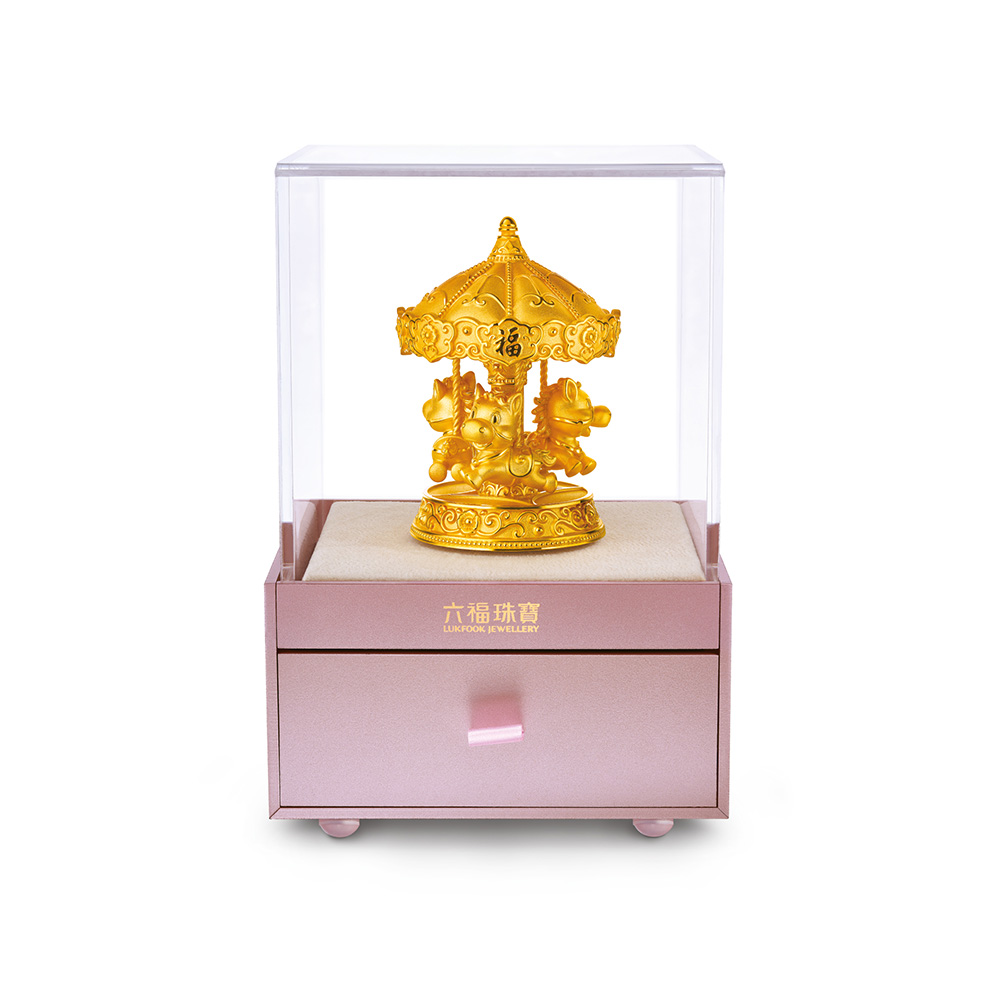 | 以象征快乐与童真的游乐园回旋木马为设计灵感,融入崭新创意足金玩法,打造成木马可被转动的实体足金摆件,充满童心乐趣。底座饰以花纹图案,融入福字与如意纹样,寓意福来运转、花开如意。配以精美粉紫色包装盒,360°均可观赏摆件精雕细琢之处;抽屉式收纳空间可存放首饰,心思与实用兼备。 | ||||