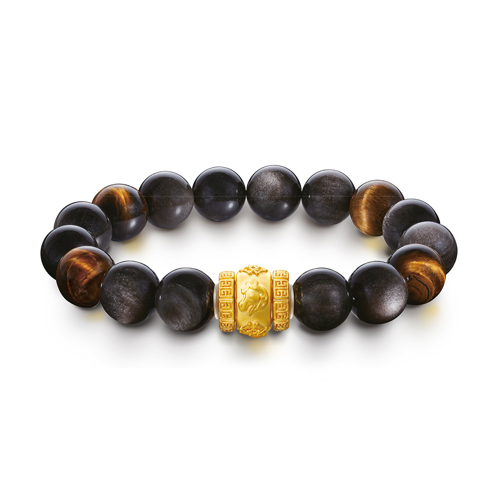 | 足金生肖水晶手链 (配黄虎眼石及黑曜石) | ||
