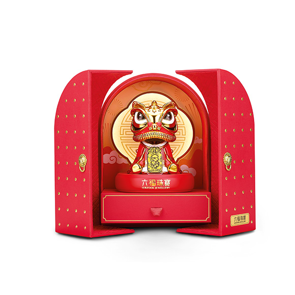 | 鞭炮一响,黄金万两。在辞旧迎新的鞭炮声中,火红喜庆的国潮醒狮登台亮相,搭配足金“福”字春联,醒目的鞭炮元素和铜钱图案象征着万象更新、招福招财。还设有太阳能装置,在阳光照射下,狮头能上下摆动,生动不已。配以国潮风格的精美包装,彰显出雍容大气的品味,是辞旧迎新的礼赠佳选,祈愿新的一年大吉大利、财福满溢。 | ||||