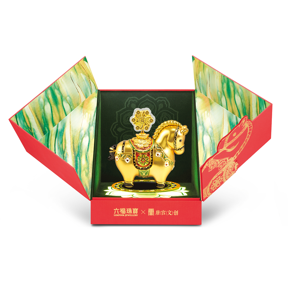 承盛世大唐的华彩乐章,六福珠宝携手唐宫文创旗下IP《唐宫夜宴》,推出以形态丰腴圆润的唐马为灵感的“墩墩马”造型足金工艺品及实体足金摆件,将盛唐美学概念的古韵元素融入现今生活中。唐马圆润饱满、气韵生动,呼应了盛唐华贵雍容之美,寓意富贵吉祥。配以精美的唐宫文创联名的专属礼盒,融合盛唐纹样,尽显文化底蕴,彰显流转千年的智慧与繁华特色。无论是自己收藏还是礼赠亲友,都别具心意,祝愿马年接福聚宝、财福满盈、万事顺遂。
