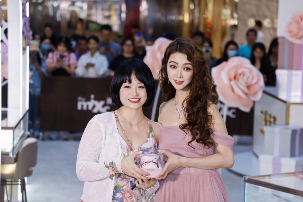 薛凯琪首次光临六福珠宝「甜爱巡游」快闪店并现场开启甜爱「琪」遇记,给大家留下了一个难忘的回忆,为纪念此次「琪」遇之旅,六福集团执行董事兼营运总裁王巧阳女士特为薛凯琪送上“玫瑰密语”音乐水晶球足金摆件,里面的玫瑰灿烂盛放,而且永不凋零,寄语不论生活还是事业,都能“无尽花开 无尽甜美”。随后,薛凯琪前往「六福集团」旗下的高端珠宝品牌 「六福精品廊」探店,带领粉丝在珠宝和艺术为主题的空间发现更多宝藏好物。