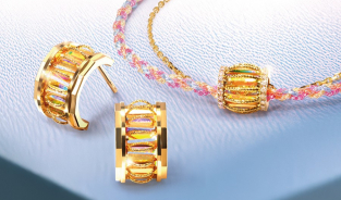 光圈流转 炫彩同行 六福珠宝「冰·钻光影金」系列在炫彩金片上复刻仿佛梯方钻石光彩,花丝勾勒外形轮廓,金丝刻面释放光芒,犹如黄钻般闪耀,焕发如自然界奇迹的丁达尔效应渐变光感。七夕发布全新系列...
