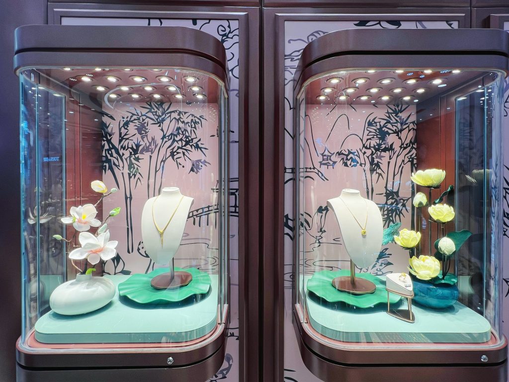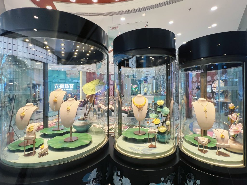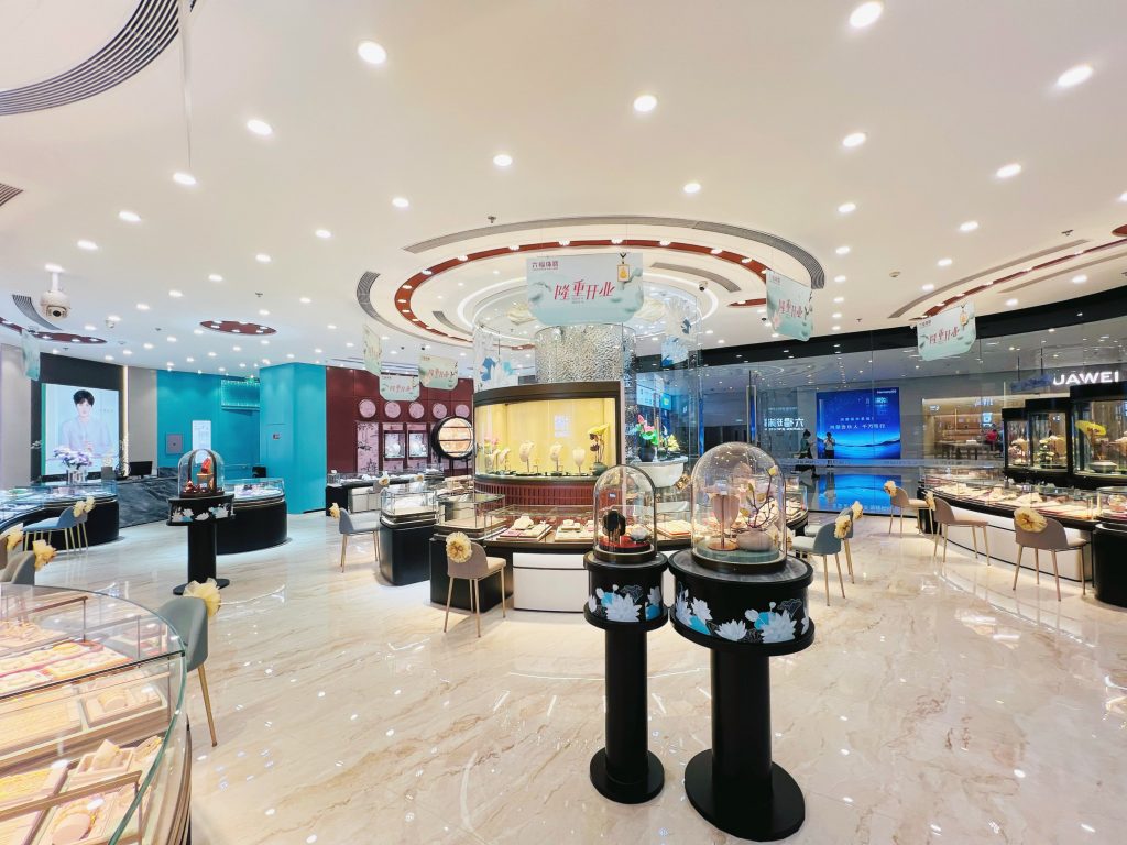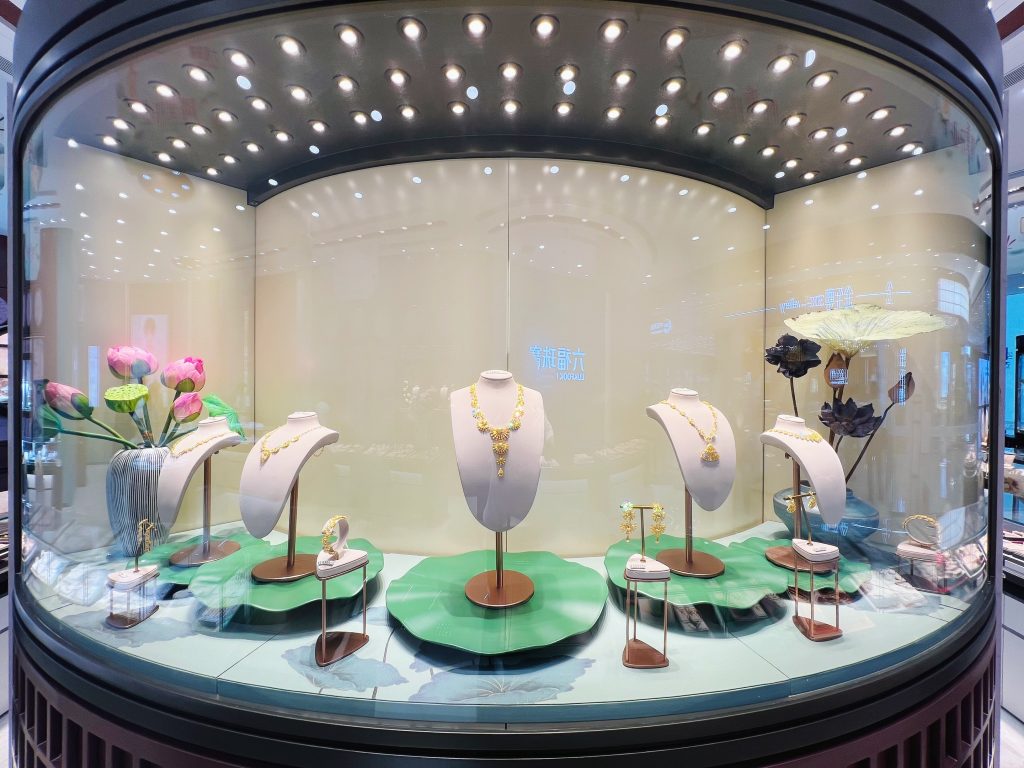 「大连恒隆广场」坐落于大连市核心商业地段,交通便利,汇聚全球潮流精粹,消费潜力巨大。该「荷塘月色主题概念店」采用六福特色装修形象,以清新淡雅的江南荷塘月色为设计背景,加之创新的艺术造型、精湛工艺及空间深化的摆件,将江南水乡的温婉与珠宝的璀璨相结合,打造出独特而富有诗意的购物环境。我们深信通过双方的精诚合作,定能为广大消费者带来尊贵卓越的购物体验。