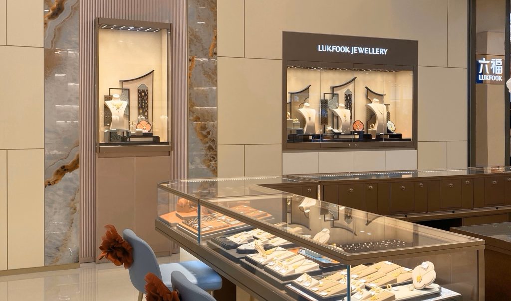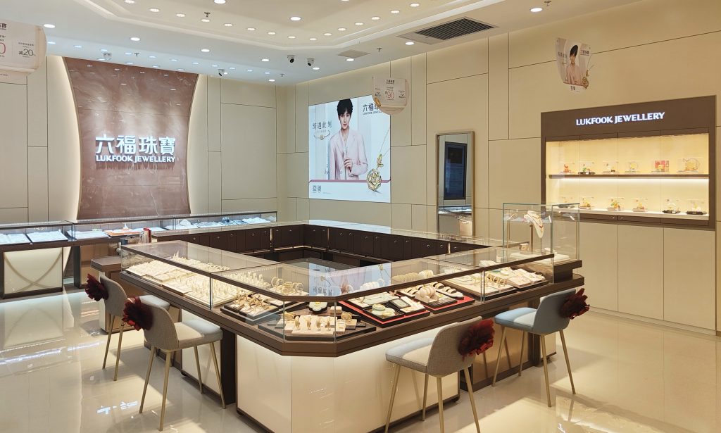 「台州椒江青悦城六福专柜」位于商场一层,店铺形象简约时尚,整体空间舒适明亮,在商场名品林立间闪耀夺目。展柜内陈列着CNC炫彩工艺新品⸻「冰‧钻光影金」,炫彩光芒如钻石一般;搭配浪漫唯美的「爱很美」及个性简约的「Hexicon」系列钻饰、极具东方神韵的「福满传家」古法黄金及闪耀时尚的「Goldstyle」系列金饰,丰富的品类及款式可以满足不同顾客需求。