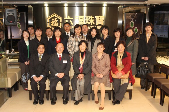 (2008年3月12日) 六福集团(国际)有限公司(「六福」/「该集团」) (交易所编号:00590)日前应香港生产力促进局邀请,接待该局与北京高级人民法院联合举办之「知识产权商标保护研修班」二十多位成员,包括多位北京高级人民法院之法官及审判官,到铜锣湾分行参观。集团总经理区国球先生及多位集团管理层,与来自北京的法院研习班成员丶商标协会之代表及不同行业的企业管理层的研修班成员,分享六福集团於内地的品牌建立及品牌管理之经验,及後由中华珠宝鉴定中心的专业鉴定师解释宝石鉴定证书的内容及示范使用宝石显微镜。