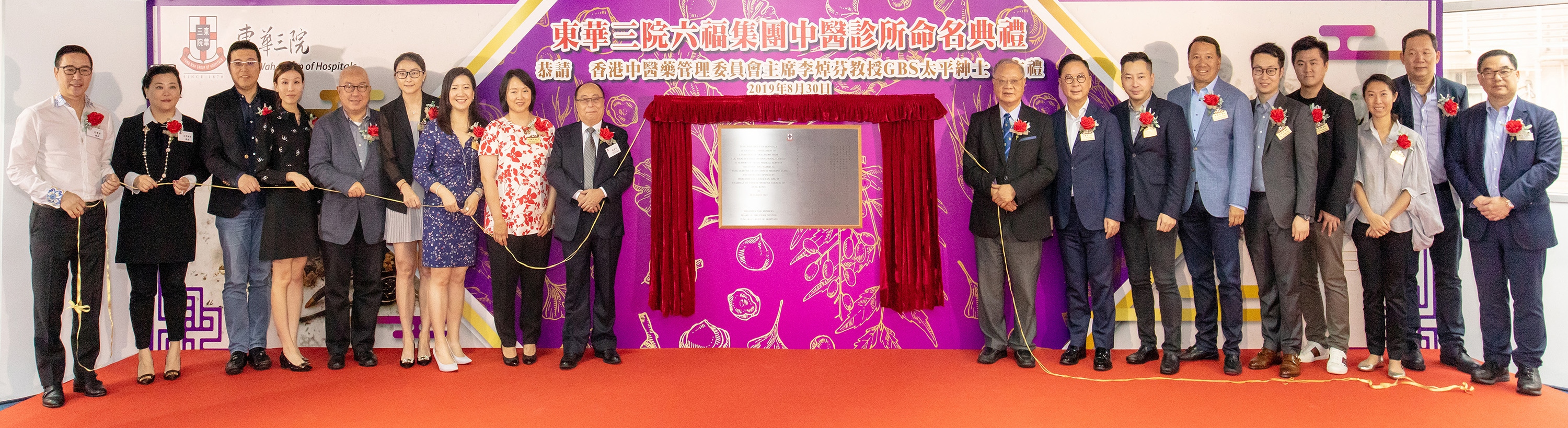 (2019年9月18日) ── 六福集团(国际)有限公司(「六福」/「集团」)(股份代号:00590)多年来热心公益,并一直支持本地慈善机构东华三院。集团早前一共捐赠220万港元予东华三院,其中于「欢乐满东华2018」慈善晚会中所捐赠的100万港元用作支持中医诊所之医疗服务,故东华三院董事局特意将位于长沙湾广场的中医诊所,命名为「东华三院六福集团中医诊所」,并于2019年8月30日(星期五)正式揭幕。
