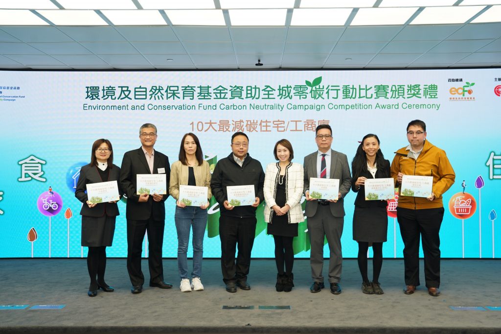 | 六福集团执行董事兼副行政总裁黄兰诗女士(右四)颁发「十大最减碳住宅/ 工商厦」奖项 |