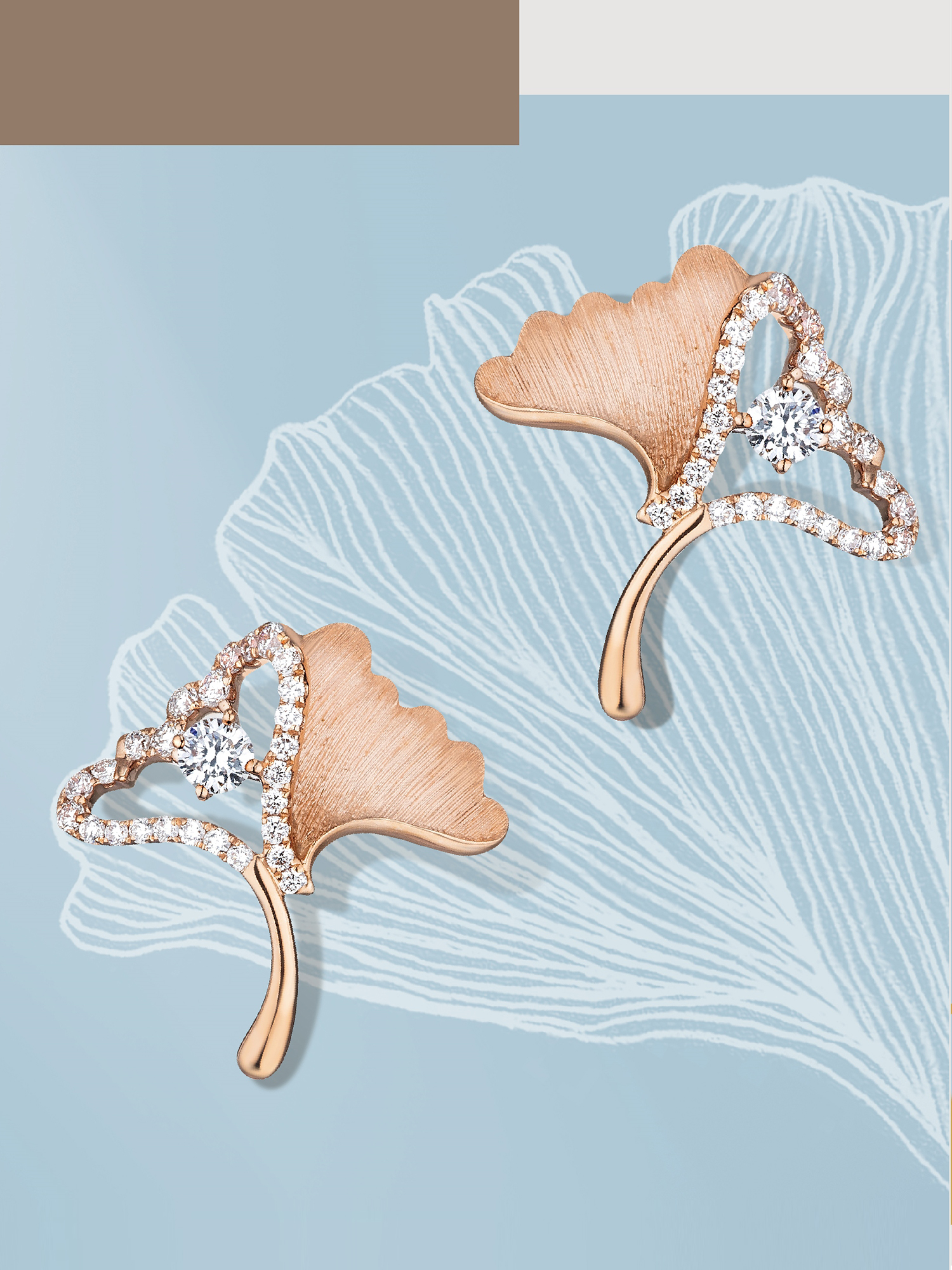 全新「Tiny Tiny Garden」18K金钻石首饰,以娇俏柔美的银杏叶为设计元素,别具匠心地打造出多款戒指、挂坠及耳环。独特拉丝工艺将银杏叶细腻的叶面纹理显露无遗,搭配晶莹剔透的闪钻及优雅的18K红金,造型逼真精致,为炎热夏日增添一份金色浪漫。