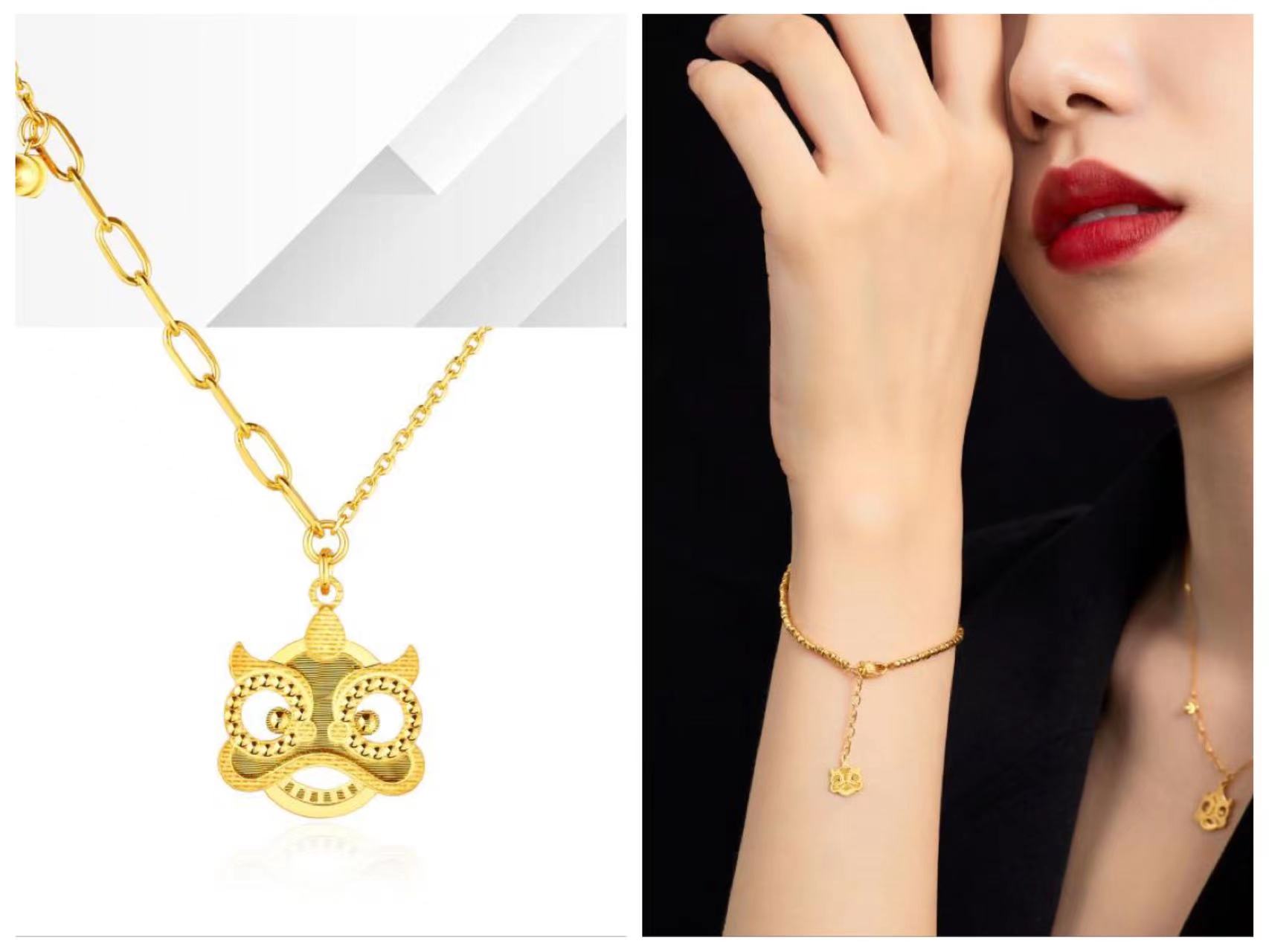 可爱的舞狮造型与绚丽黃金巧妙融合,配以不对称设计的项链,加上耳环和手链的套装,演绎别具一格的魅力。「舞狮」有「平安无事」之意,祈愿各位吉祥如意,平安好运时刻伴随。