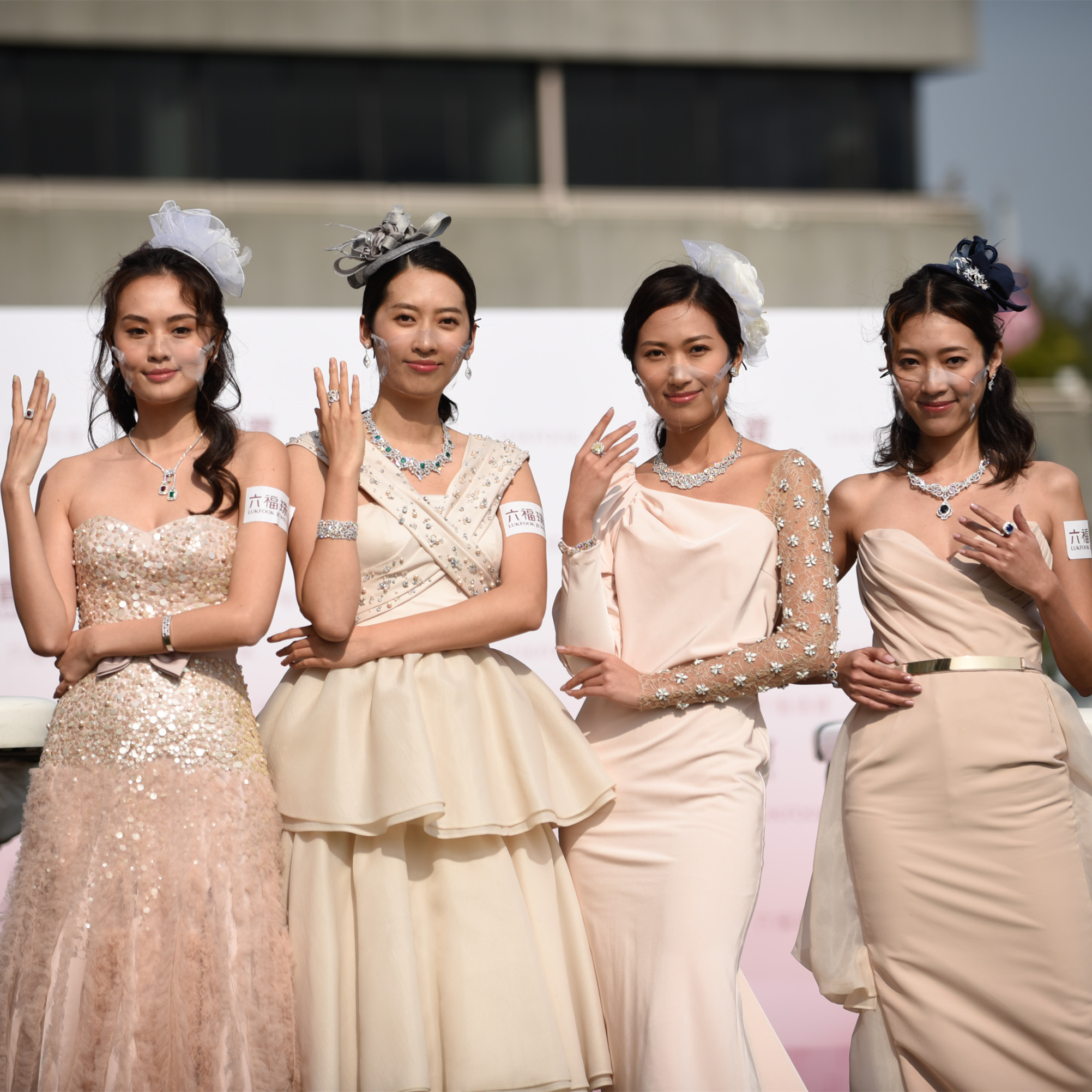 为配合当日的活动主题,大会特别设立皇冠试戴体验区,准备了多款造型优雅别致的头饰供现场嘉宾佩戴,尽显时尚美态。四位模特儿更分别于马匹凯旋门及马会厢房上演时尚闪饰秀,身穿由国际知名时装设计师何国钲先生(Dorian Ho)设计的全新2022年春装系列晚礼服,展示多款总值港币数千万的六福珠宝精选钻饰,夺目的造型与闪烁的钻饰互相辉映,叫人目不暇给,心动不已。