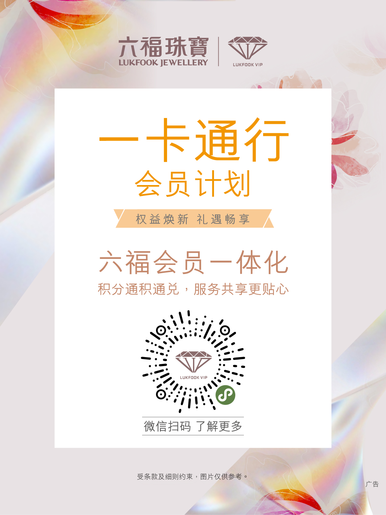 受条款及细则约束,详情请查阅六福珠宝微信会员小程序内之「会员计划」或向店员查询。