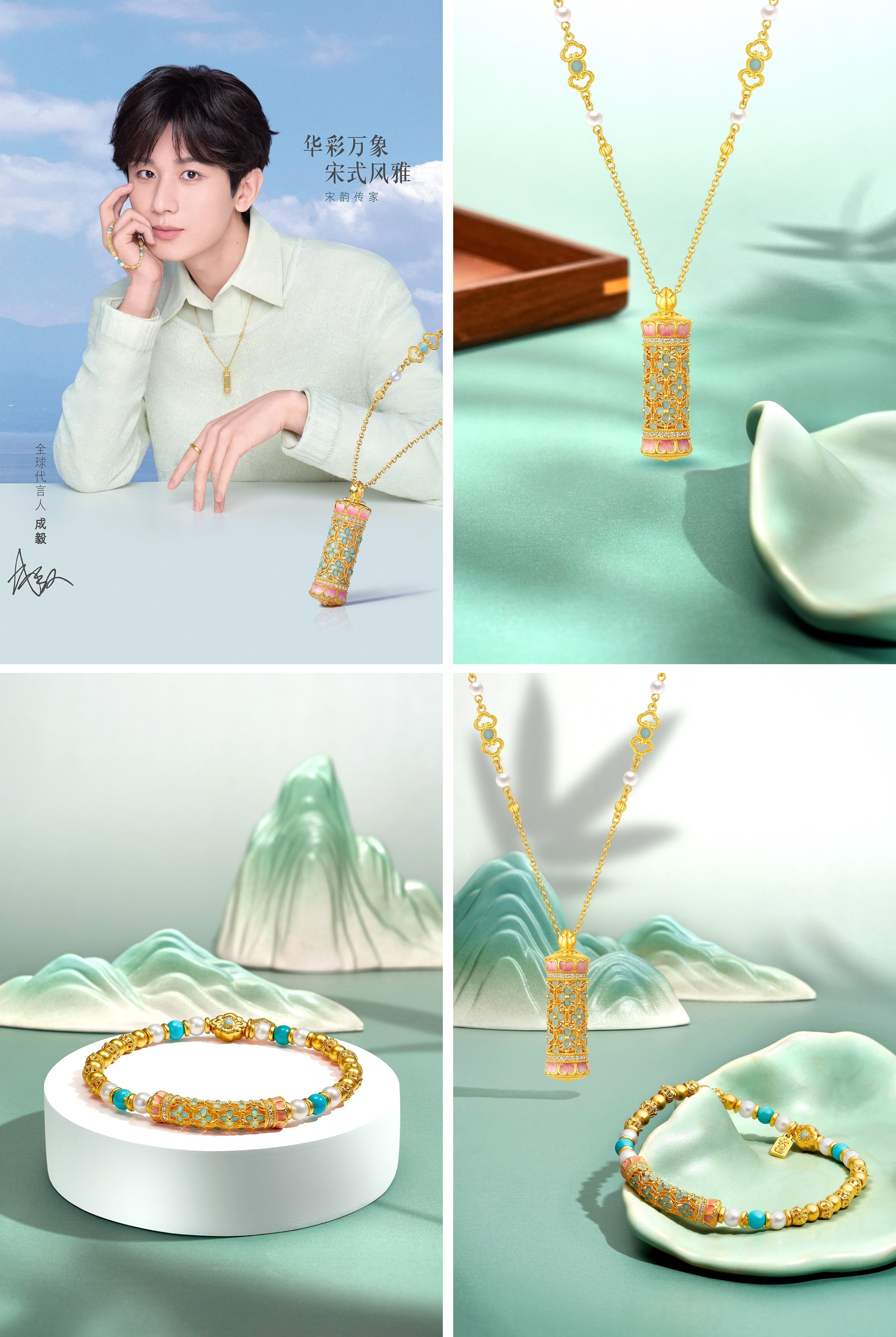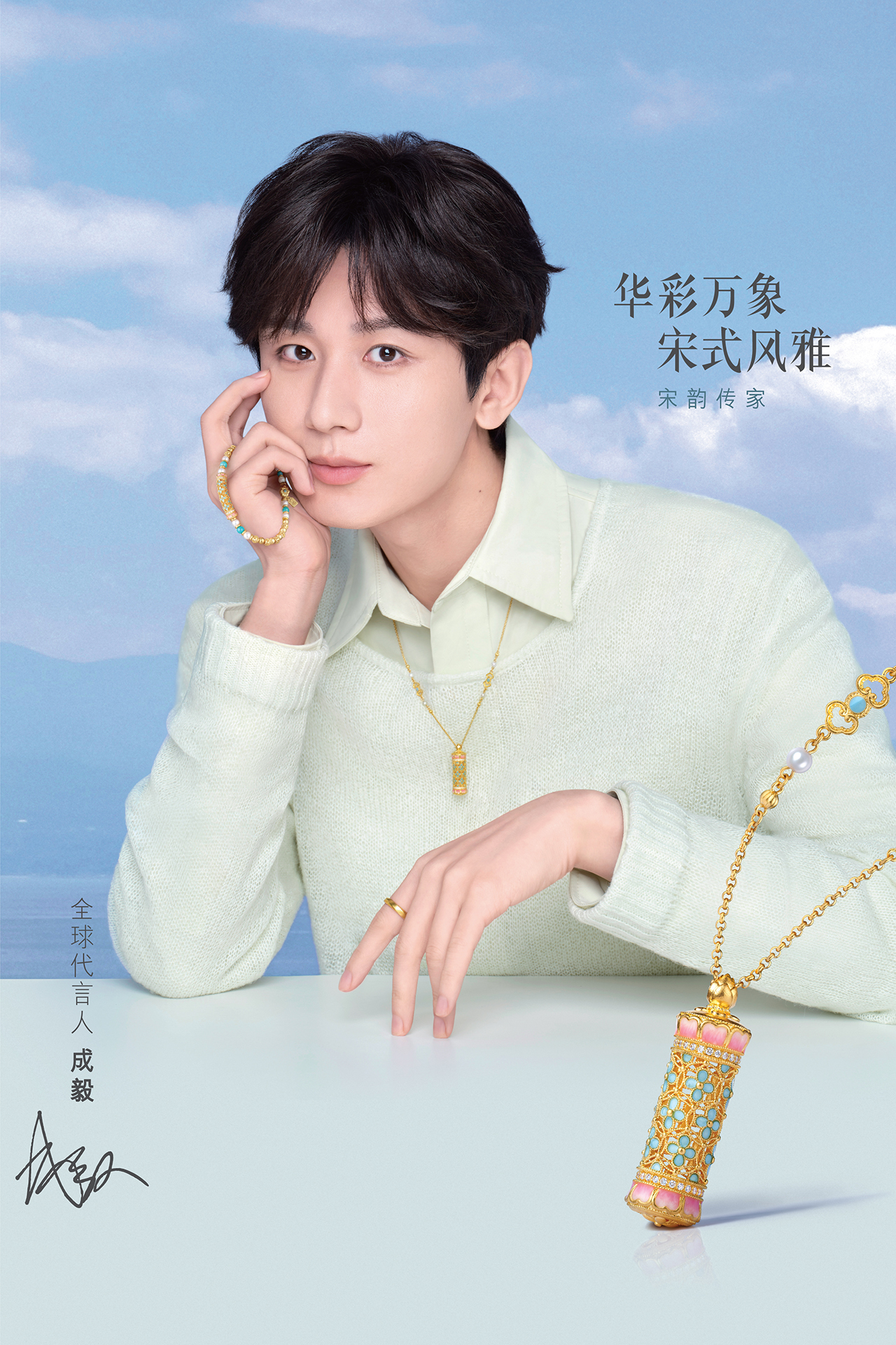 风雅之韵,以国际化视角诠释东方美学的生命力。六福珠宝全球代言人、实力演员成毅以温文尔雅的气质诠释宋风雅韵,举手投足间尽显东方文人的儒雅俊秀风范。