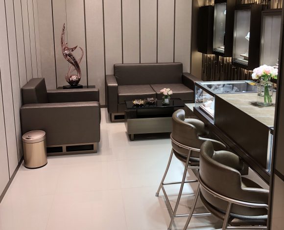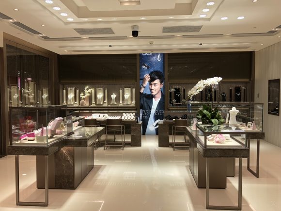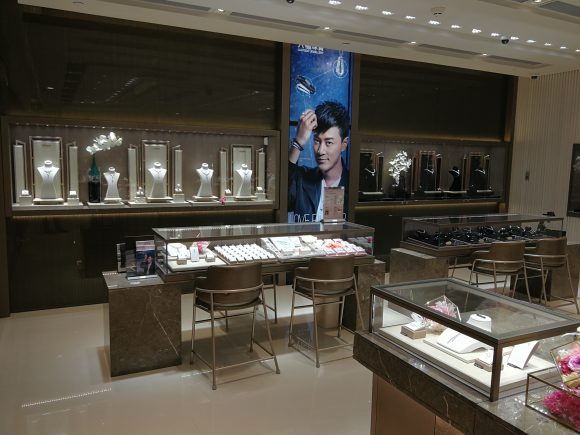 「王府中环广场」糅合御品臻奢、潮流风尚、环球珍馔艺膳、康逸悦享及文化艺术,致力于打造别具一格的京城生活体验,是针对新生代消费群量身定制的中高端购物中心。「六福珠宝」为了给顾客营造一个舒适、高雅的珠宝选购空间,在店铺的装潢上一直力求精益求精,务求将专柜打造为一间呈现珠宝饕餮盛宴的顶级殿堂。该六福珠宝专营店营业面积158平方米,店内以时尚靓丽的香槟色为主色调,配合柔亮的灯光及通透的玻璃饰柜,与璀璨精致的珠宝首饰互相映衬,尽显典雅潮流风范,这不仅符合大众消费者审美情趣,亦迎合高端时尚人士之品味,无一不突显出当今之时尚风向。完美的业态组成和优势地理位置,将为「六福珠宝」提供优越的商业平台和兴旺繁盛的客流,令「六福珠宝」品牌可以更好地服务北京地区消费人群,为他们带去优越至尊之购物体验。