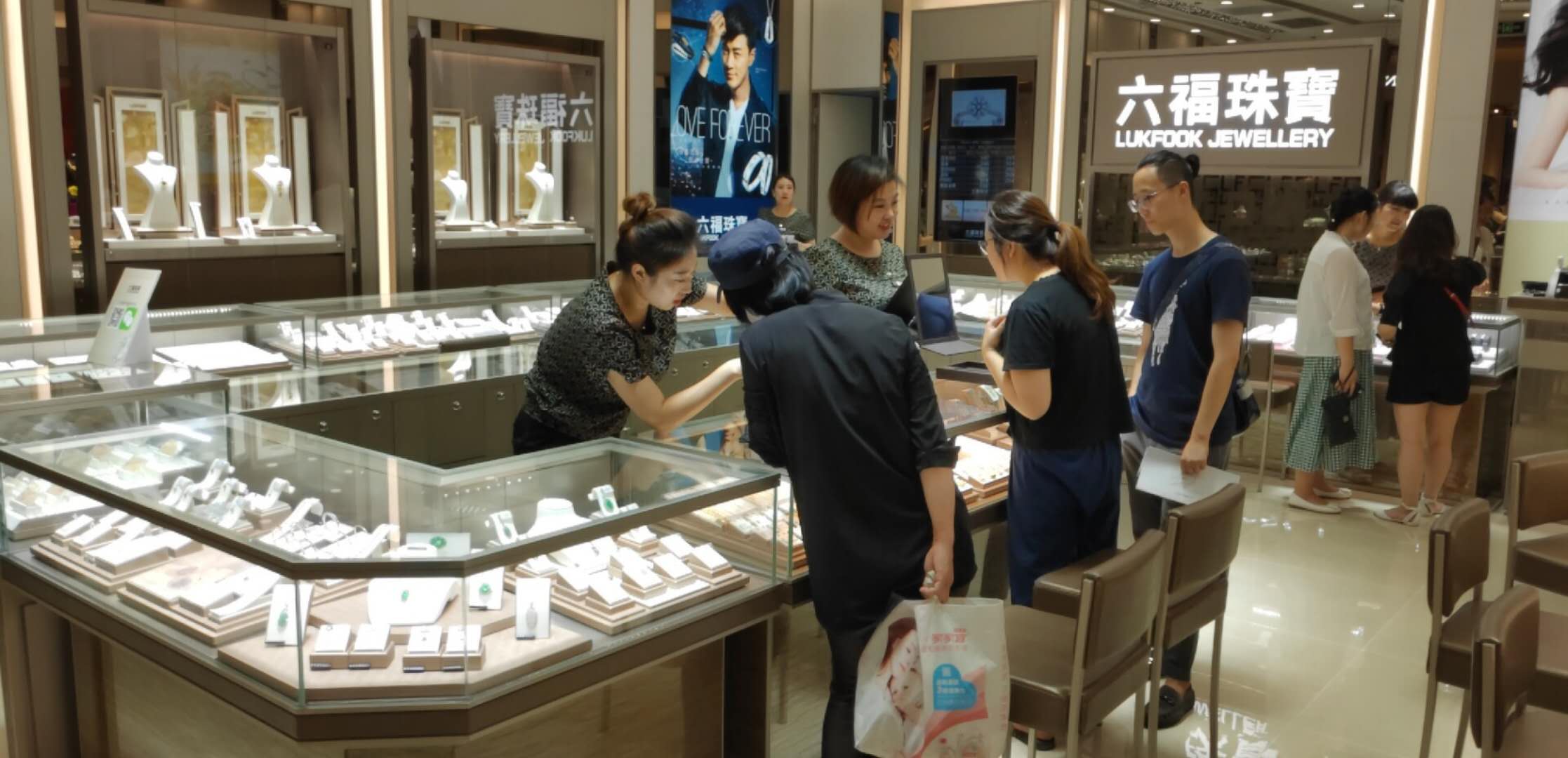 「青岛崂山金狮购物广场六福专柜」拥有90平方米的营业面积,装修方面注重灯光及颜色的运用,意在突显「六福珠宝」品牌元素及特色,全面提升「六福珠宝」品牌文化气息,努力为每一位进店的顾客营造出专业、舒适、高雅的珠宝选购环境。服务方面,注重专业化与人性化服务结合,为增加顾客的互动体验,「六福珠宝」推出特色刻字服务,顾客可以根据自己的需求,在戒指内壁上刻写纪念日及姓名等信息,制作悦己悦心、独一无二的珠宝首饰。产品方面,「六福珠宝」一直以精湛的工艺及独到的设计备受顾客青睐,是次入驻「青岛崂山金狮购物广场」,亦是期望将引以为傲的卓越品质及匠心独具的理念呈现给顾客。