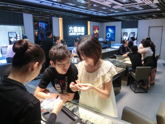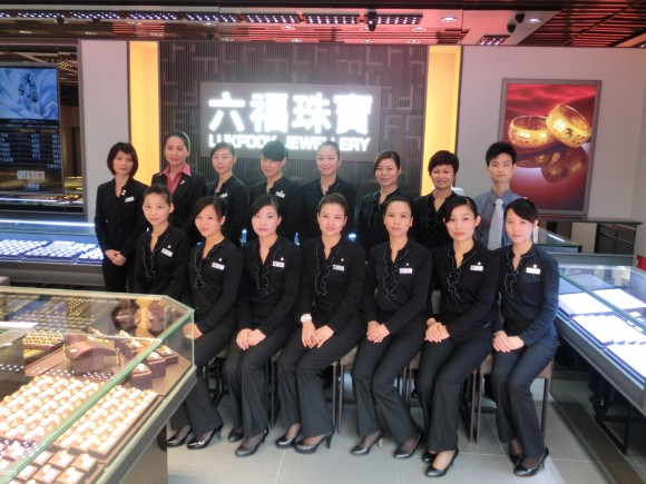 自2003年首度进驻常平镇,「六福珠宝」就凭借上乘的产品质量和卓越的服务,获得了当地市民一致的好评。2012年10月12日,在广大市民热烈期盼下, 常平镇第4间六福分店——「常平百花时代广场店」终于揭开了帷幕。该店采用了「六福珠宝」最新之店铺装潢,香槟色为主色调的简约风格,配以充足的光线及整体落地玻璃橱窗,尽显大气辉煌、高贵优雅。当然,一众店员整洁大方的着装、亲切的笑容和周到的服务,更是该店一大亮点。