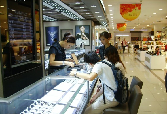 广州新光百货,毗邻上下九步行街这一传统繁华商业中心地带,是政府重点打造的现代商贸旅游龙头区域,汇聚了众多国内外一线品牌,环境典雅舒适,是颇受消费者喜爱的综合性购物娱乐场所。开业当天,惠风和畅,时尚典雅的店铺外观显得分外瞩目,而精致的珠宝首饰及热情亲切的服务,更吸引了众多顾客停驻细品,徜徉流连,令其成为商场当天最受欢迎的店铺之一。