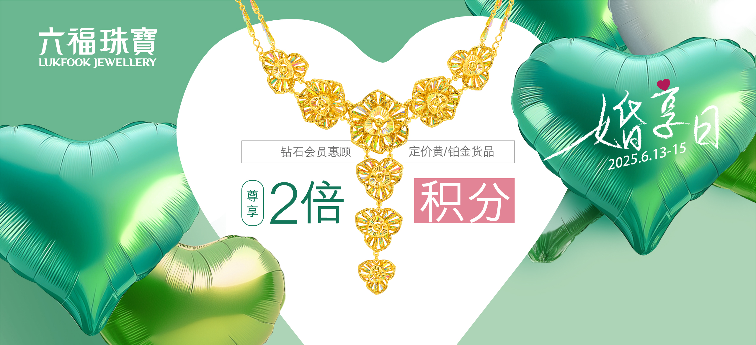 相濡以沫,细水长流的时光里总得有些特别惊喜令两人关系更进一步。每月14日是六福珠宝的「婚‧享日」,均会推出限定优惠或各种奬赏礼遇。6月婚享日,在仲夏共赴一场婚享日的浪漫约定。6月13-15日六福珠宝婚享日,钻石会员惠顾定价黄金/铂金货品,尊享2倍积分。