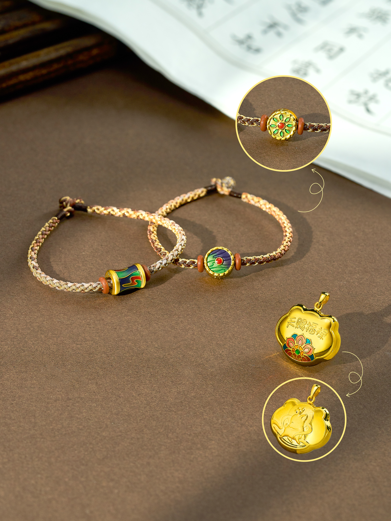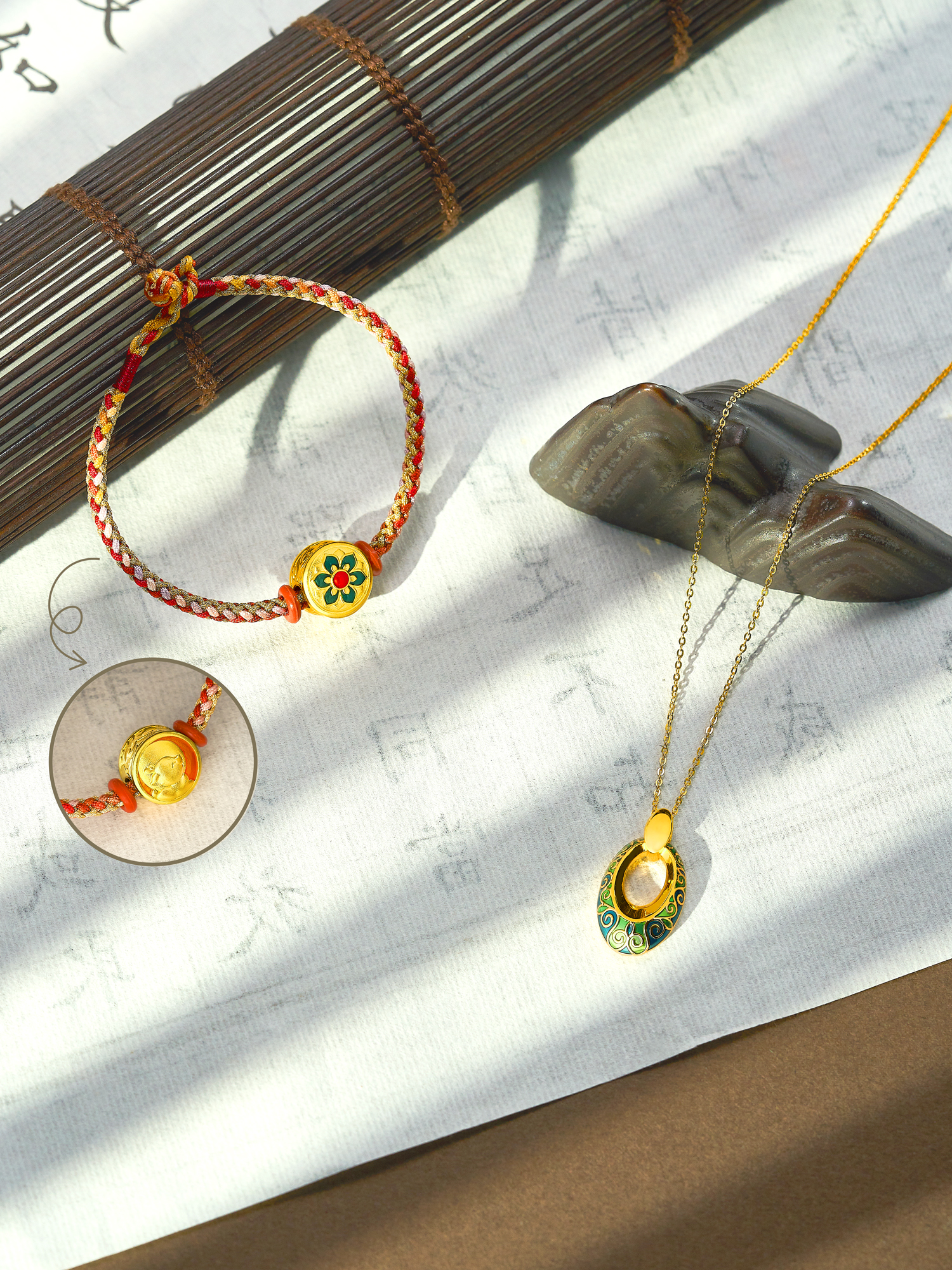 敦煌博物馆官方授权产品,全新「敦煌」系列饰品,以「忍冬纹」、「九色鹿」、「飞天飘带」、「敦煌沙漠景观」等设计元素,将丰富的纹饰与中国文化臻美融合,别具匠心的工艺配以低温珐琅,幻变出多款瑰丽华美的首饰,部分款式更可作双面佩戴,轻盈灵动,色彩斑斓,散发出浓厚的东方韵味,重现敦煌艺术的璀璨。