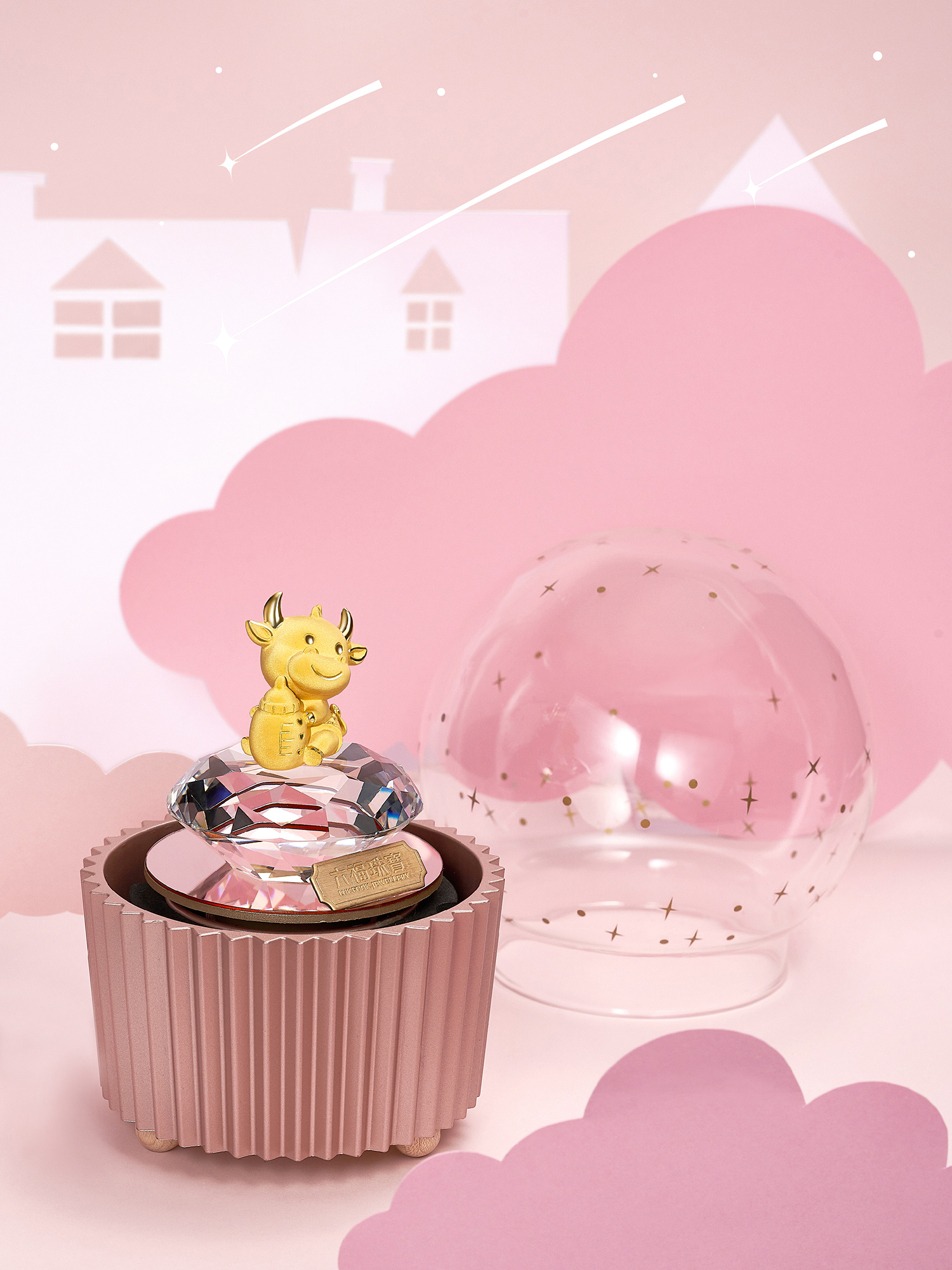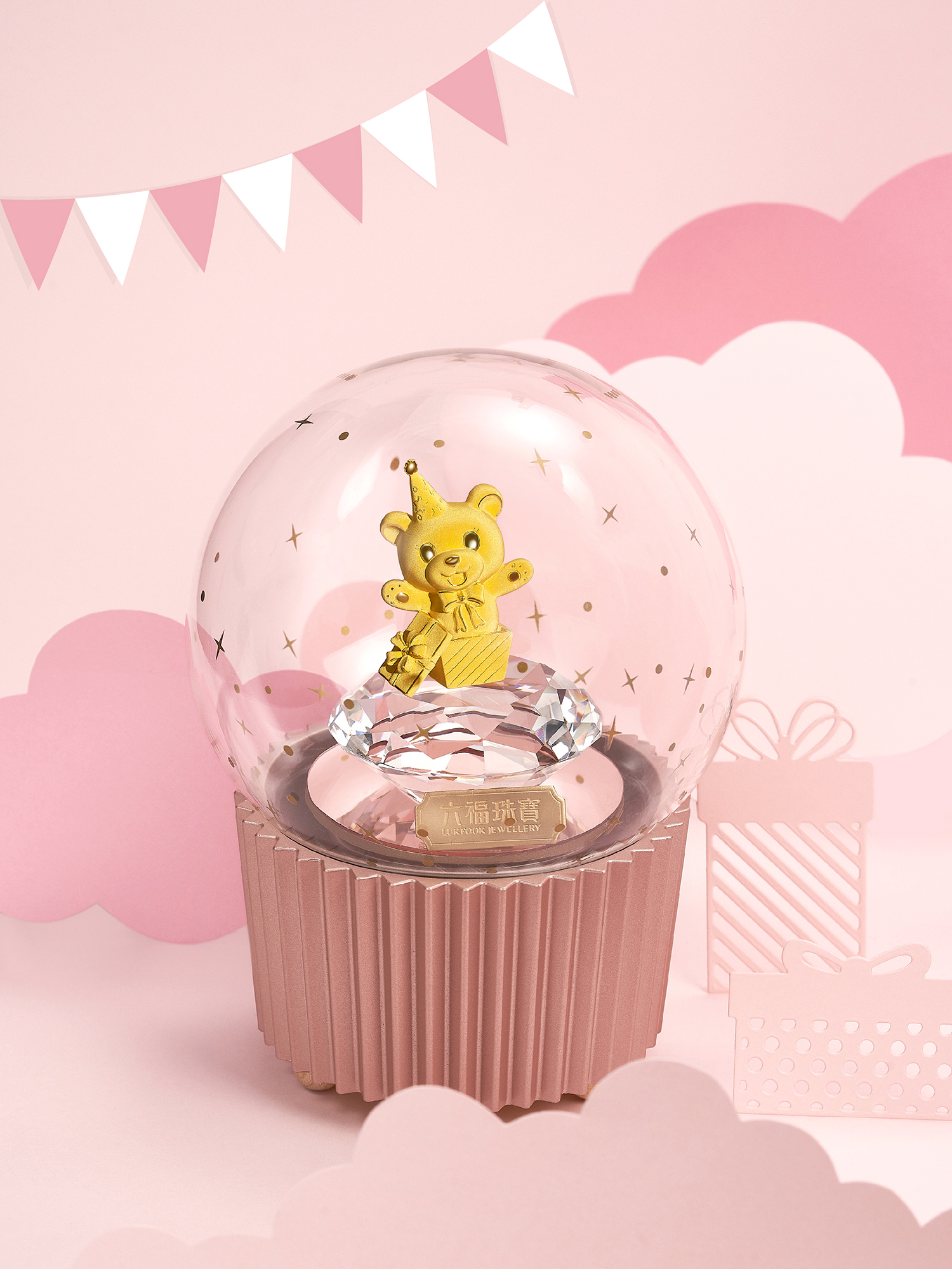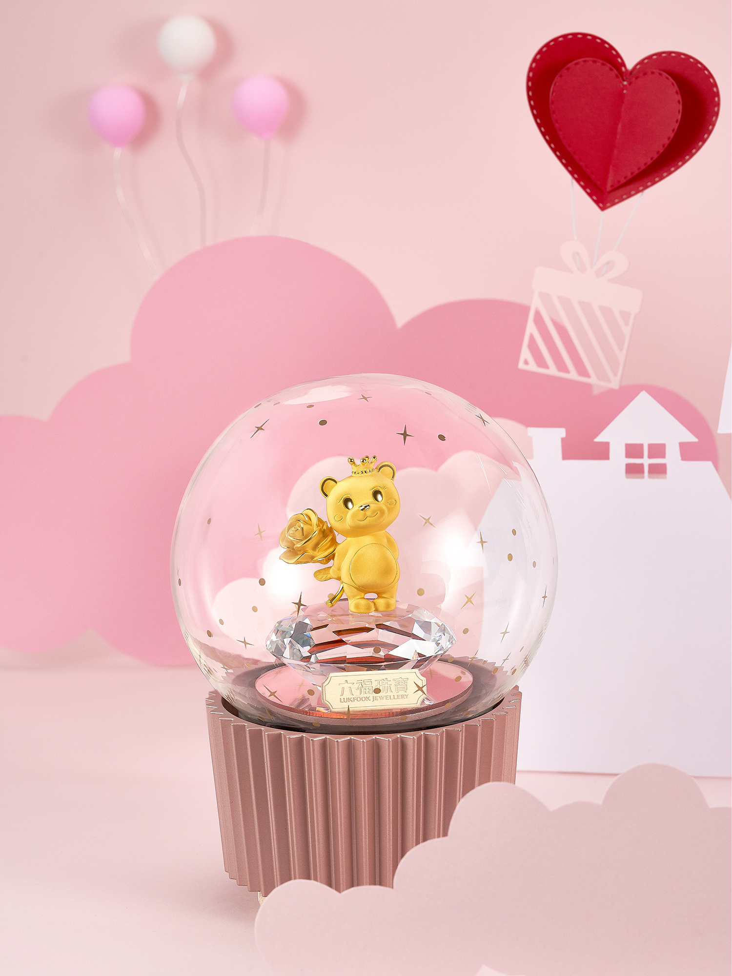 每件「实体黄金摆件」产品均配有国检证书,而首批采用发明专利技术打造的「『音』爱转动系列音乐水晶球实体黄金摆件」已率先于中国内地隆重推出,实为送礼及收藏之选。