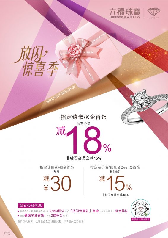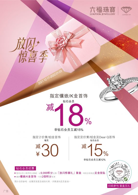 六福珠宝呈献「放闪惊喜季」购物优惠,即日起至2022年1月3日,于中国内地指定分店可享:
