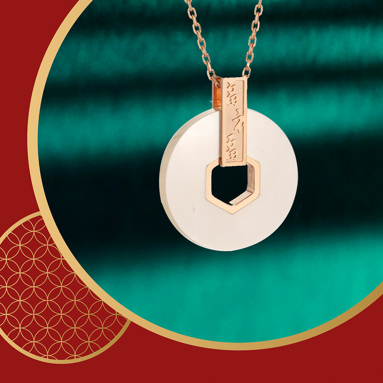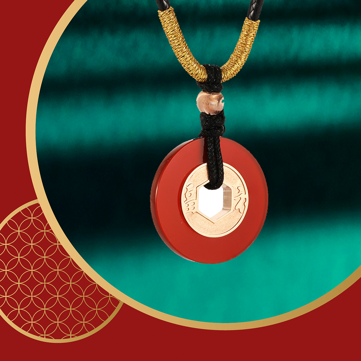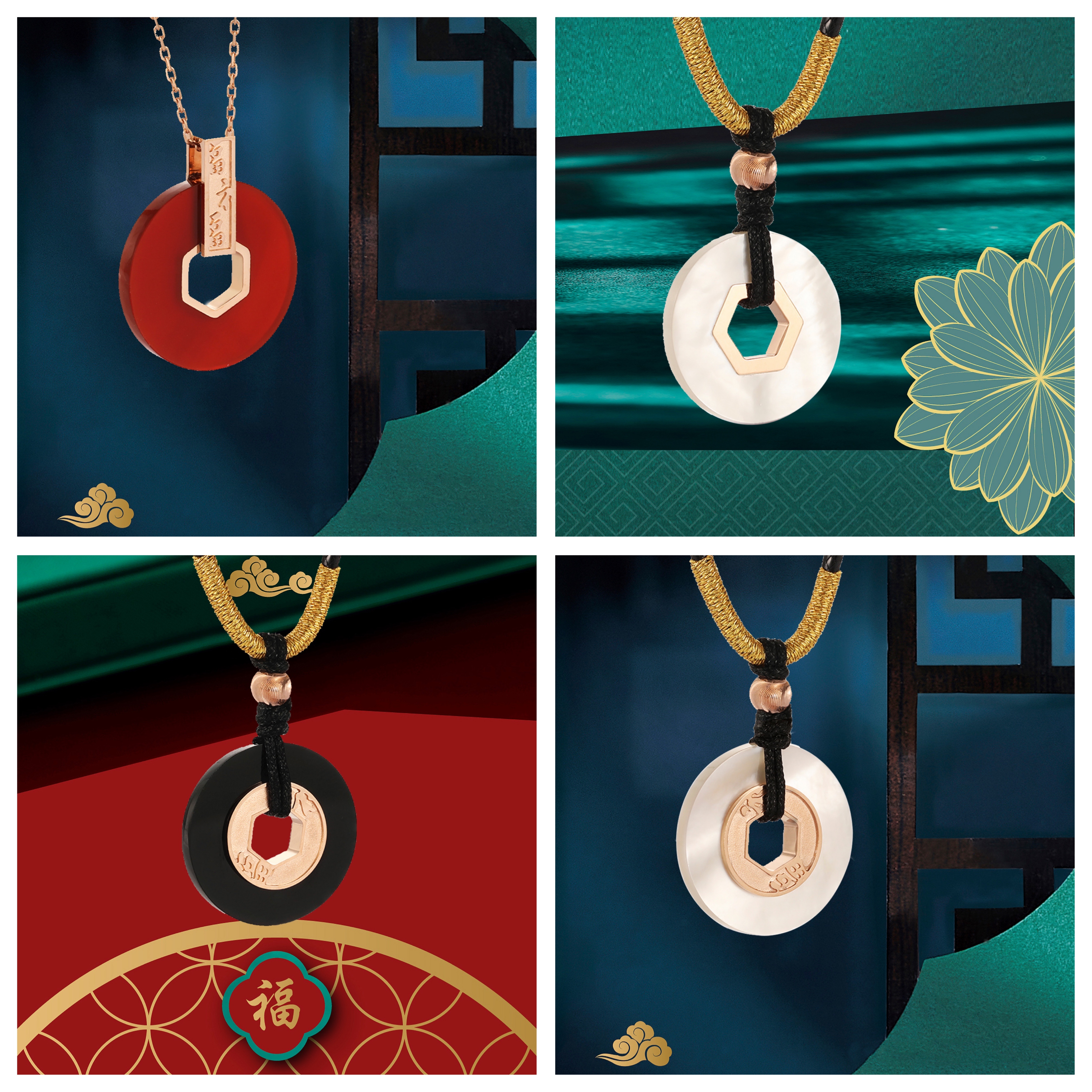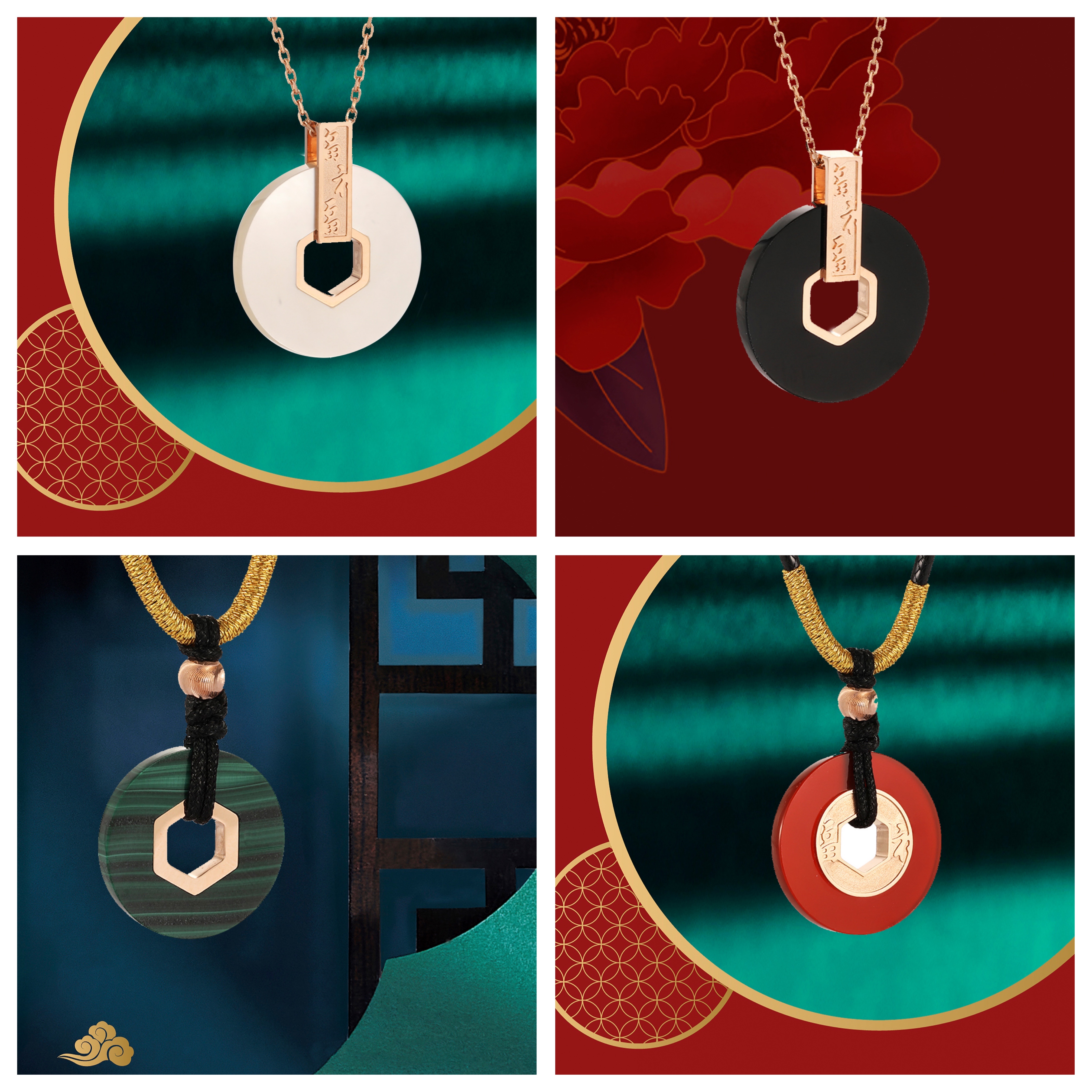 平安扣,扣平安,「平安是福」项链可选编绳项链款或K金项链款,跃然颈间,时尚大气,满足不同场合的造型搭配需求,时刻焕发富贵圆满的祥和光彩。