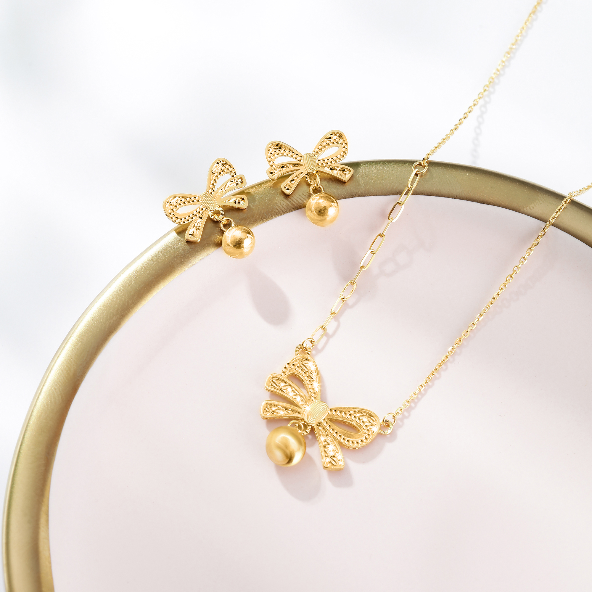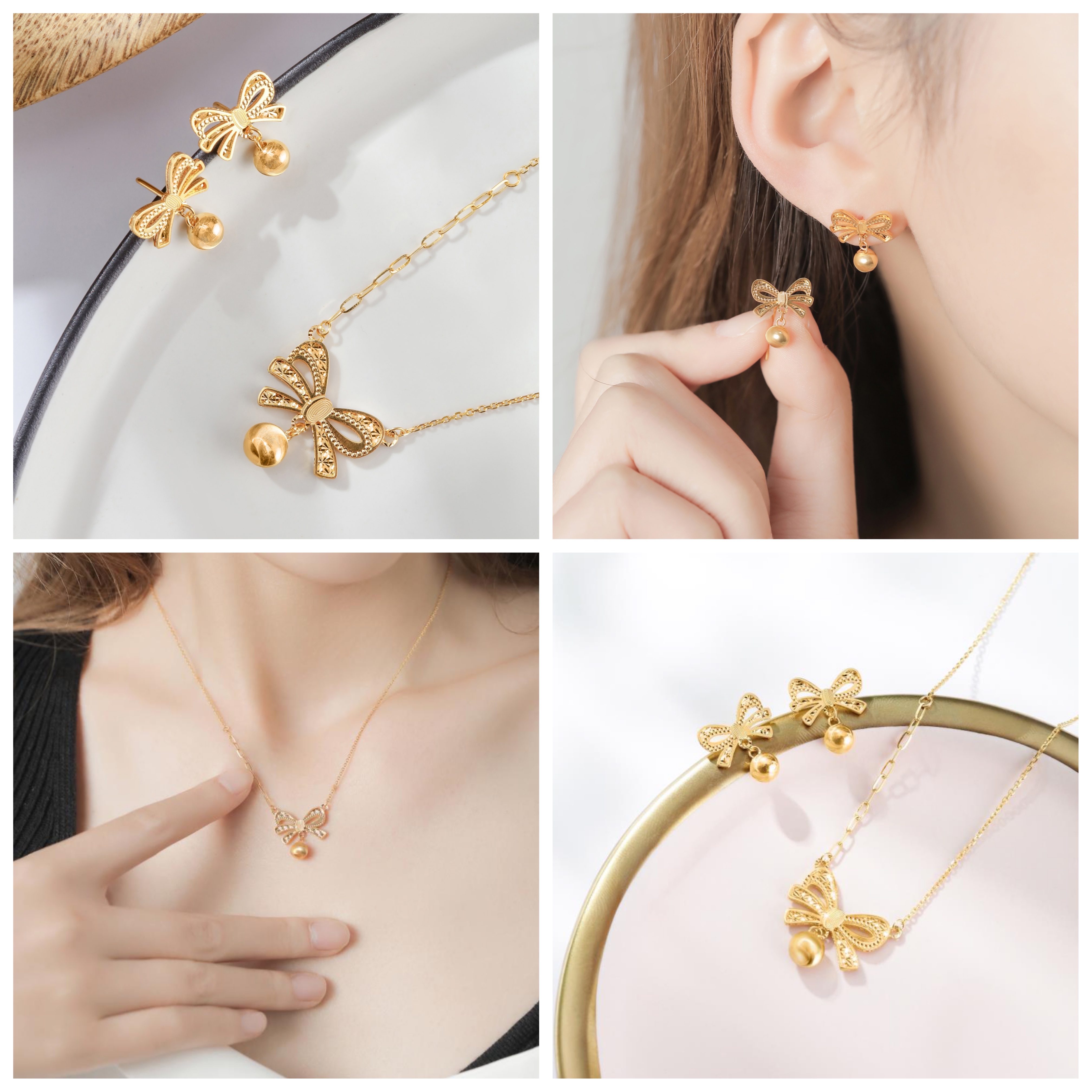 浪漫春日如期而至,携所爱一起向光前行,追逐人间的美好。全新Goldstyle「型影」金饰,采用CNC精细工艺打造出蝴蝶结上的纹理,形态宛如丝带系出来般飘逸秀气,栩栩如生,点缀一颗如珍珠般圆滑的车花金珠,细节感与高级感并存,充分展现精致且甜美的少女感气息。