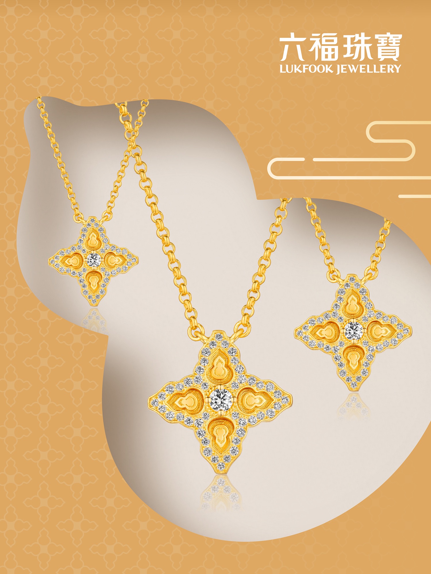 全新「国色天香」足金钻饰以葫芦为设计灵感,打造四方有「葫」的祥瑞造型,寓意汇聚福泽,守护四方;以匠心工艺,于黄金表面精雕生动纹理,更添立体质感;巧用多颗闪钻精致勾勒葫芦的轮廓,中间点缀一颗璀璨主钻,尽显精致贵气,演绎中式时尚之美。部分款式可随心选择不同克重或不同主石,适配不同场合及穿搭,提升整体气质。