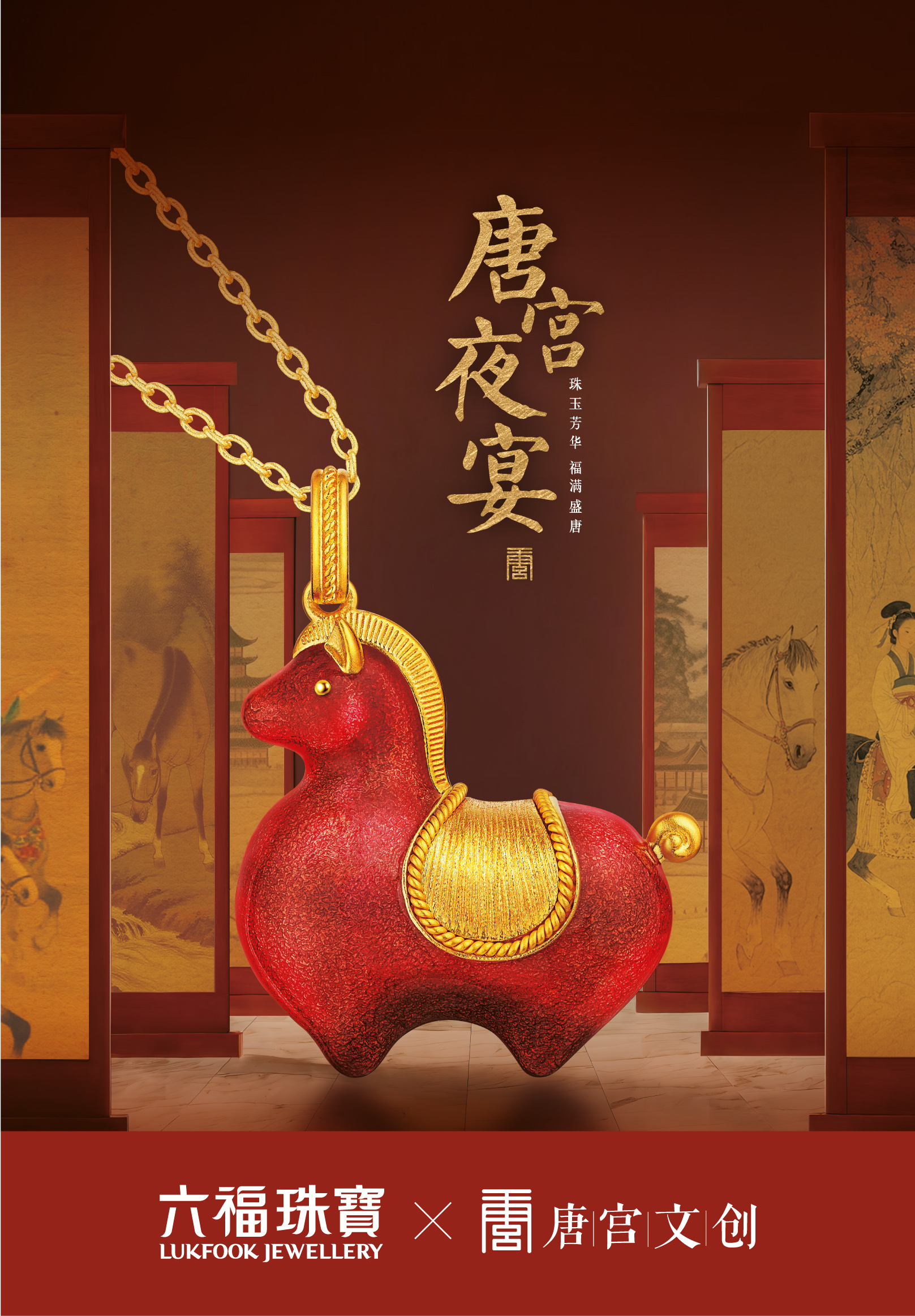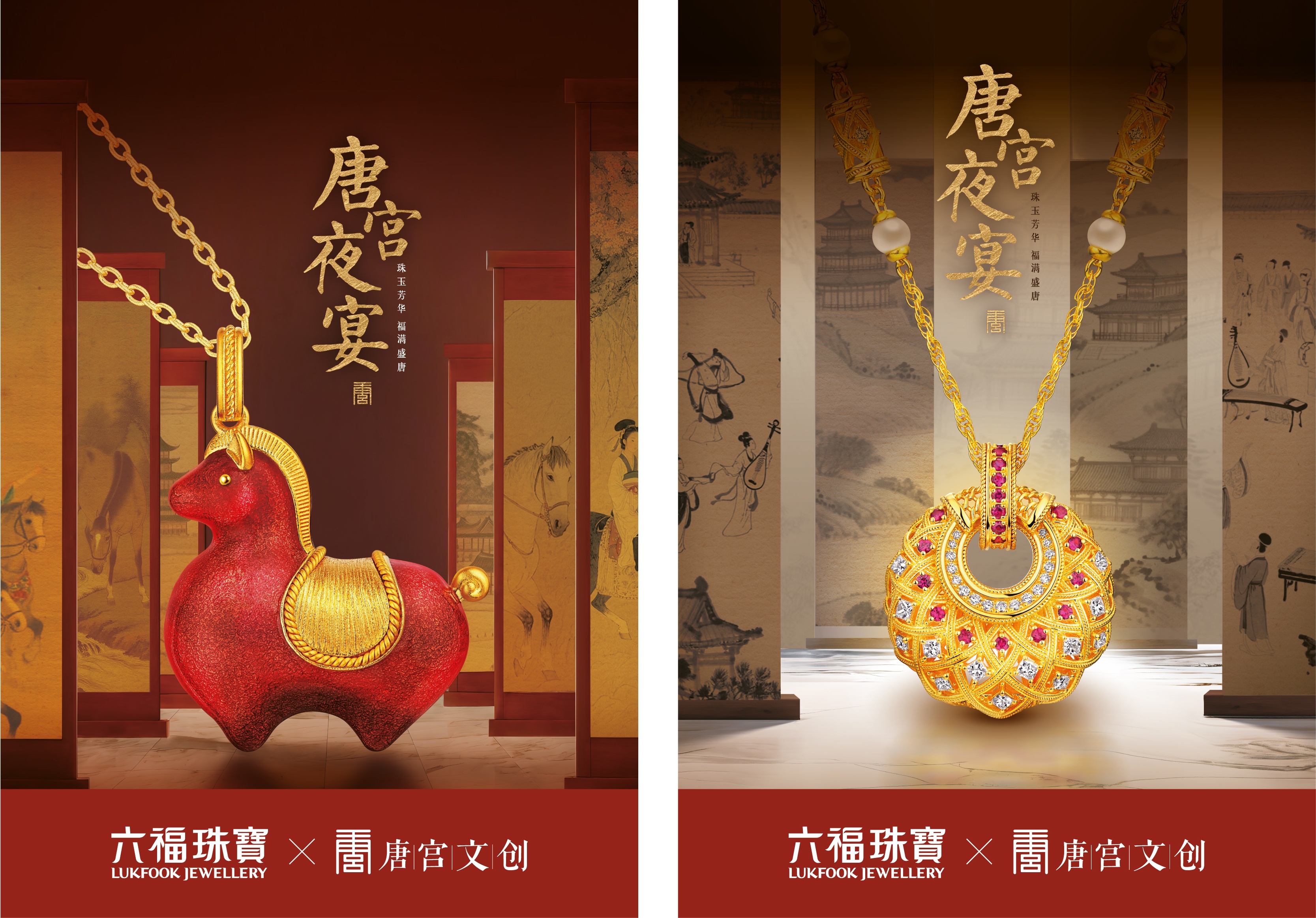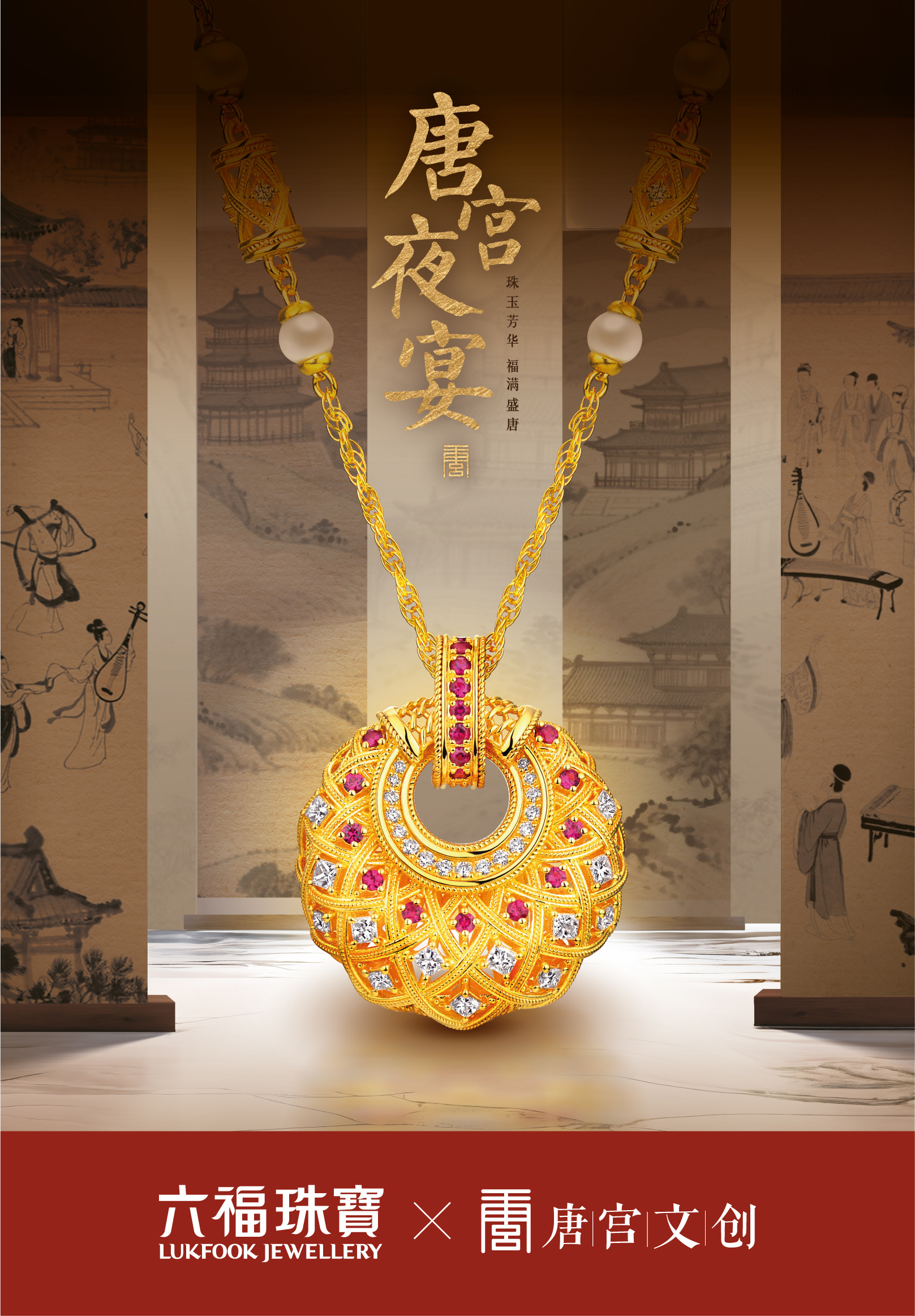 六福珠宝携手唐宫文创旗下的《唐宫夜宴》,以珠宝为媒、文化为魂,打造出兼具文化底蕴与艺术张力的联名系列,共同诠释盛唐美学的当代生命力。