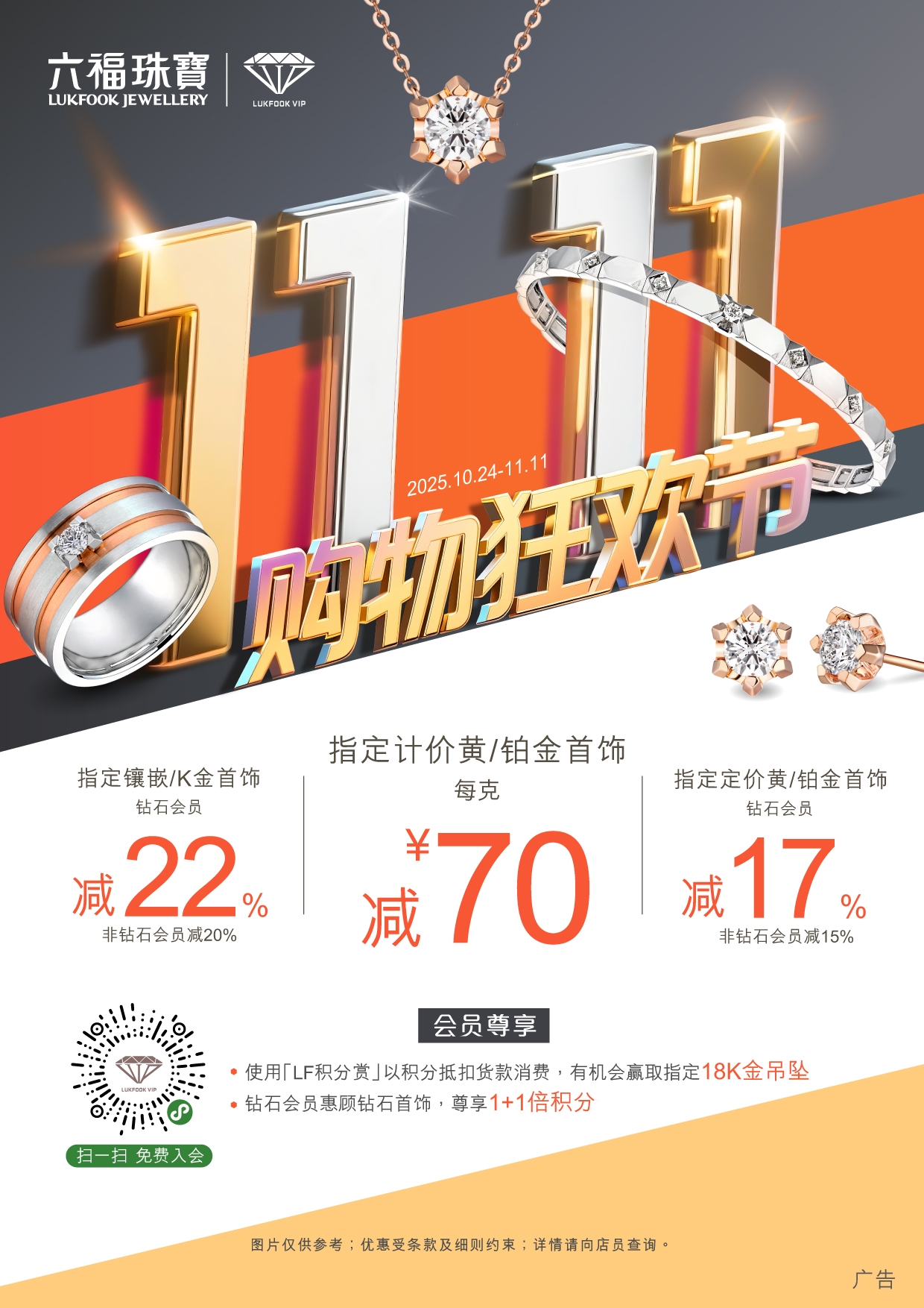 - 指定定价黄/铂金首饰减15%,钻石会员减17%