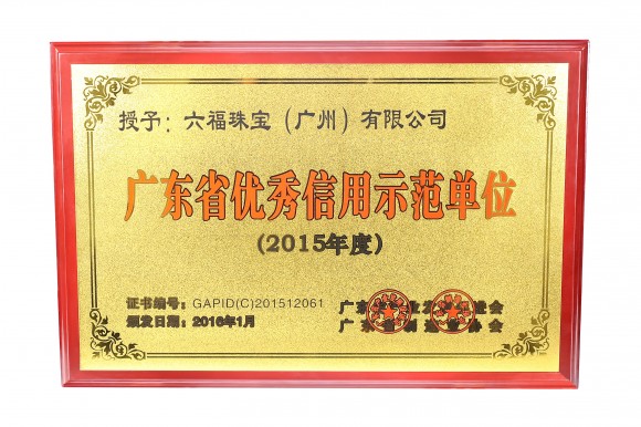 六福集团主席兼行政总裁黄伟常先生表示:「集团很荣幸旗下六福珠宝(广州)有限公司获颁发『2015年广东省优秀信用示范企业』殊荣,肯定了集团于诚信经营方面取得的成绩。未来,集团将继续坚守信念,恪守诚信务实的发展方针,以优质服务、待客以诚的精神,为顾客提供更多优质的产品及卓越的服务,为业界树立成功企业的典范。」