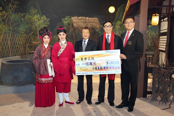 (2014年12月8日) ——六福集团(国际)有限公司(「六福」/「集团」)(股份代号:00590)多年来鼎力支持东华三院举办的「欢乐满东华」慈善晚会,今年集团再度慷慨捐出一百万港元,用以扩展该院的医疗、教育及社会服务,帮助社会上有需要人士。