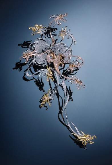 奖项 :「第13届香港珠宝设计比赛」 - 公开组「大奬」 作品名称:「喜跃腾龙」 公司 :六福集团(国际)有限公司 获奖设计师 :谢嘉荣先生;现为六福集团珠宝设计师。 得奬作品「喜跃腾龙」设计概念 为配合大会「龙跃腾飞」设计主题,设计师以九条气势磅礴的腾龙与绚丽多姿的洋紫荆花相互辉映,以笔彩生动的线条勾勒出龙与花刚柔相济的风姿。
