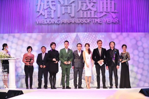 由台湾人气偶像明道先生颁发「完美婚嫁珠宝奖」奖座予六福集团华北区区域经理周嘉小姐(左三)