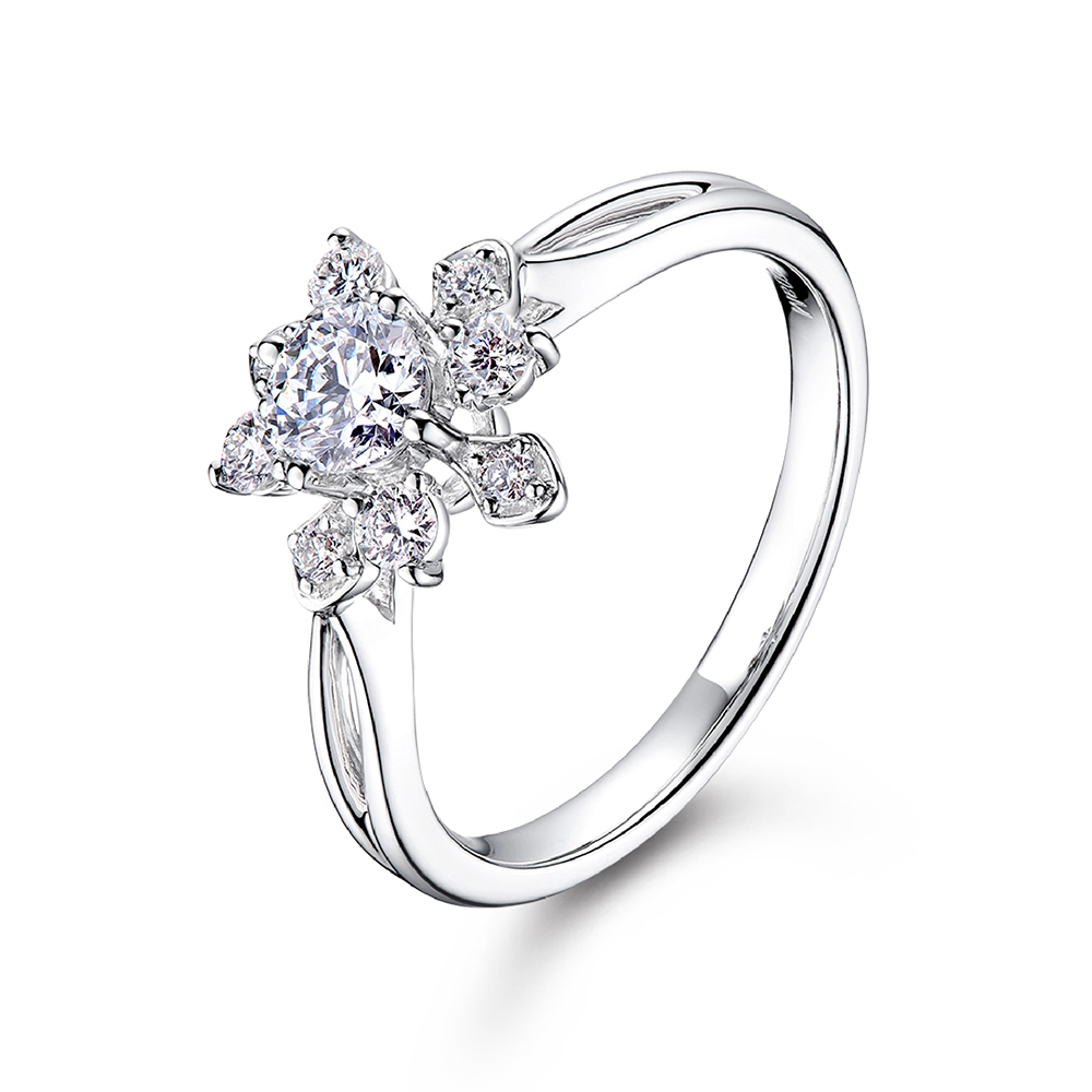 婚嫁系列「浪漫绽放」18K金(白色)钻石戒指