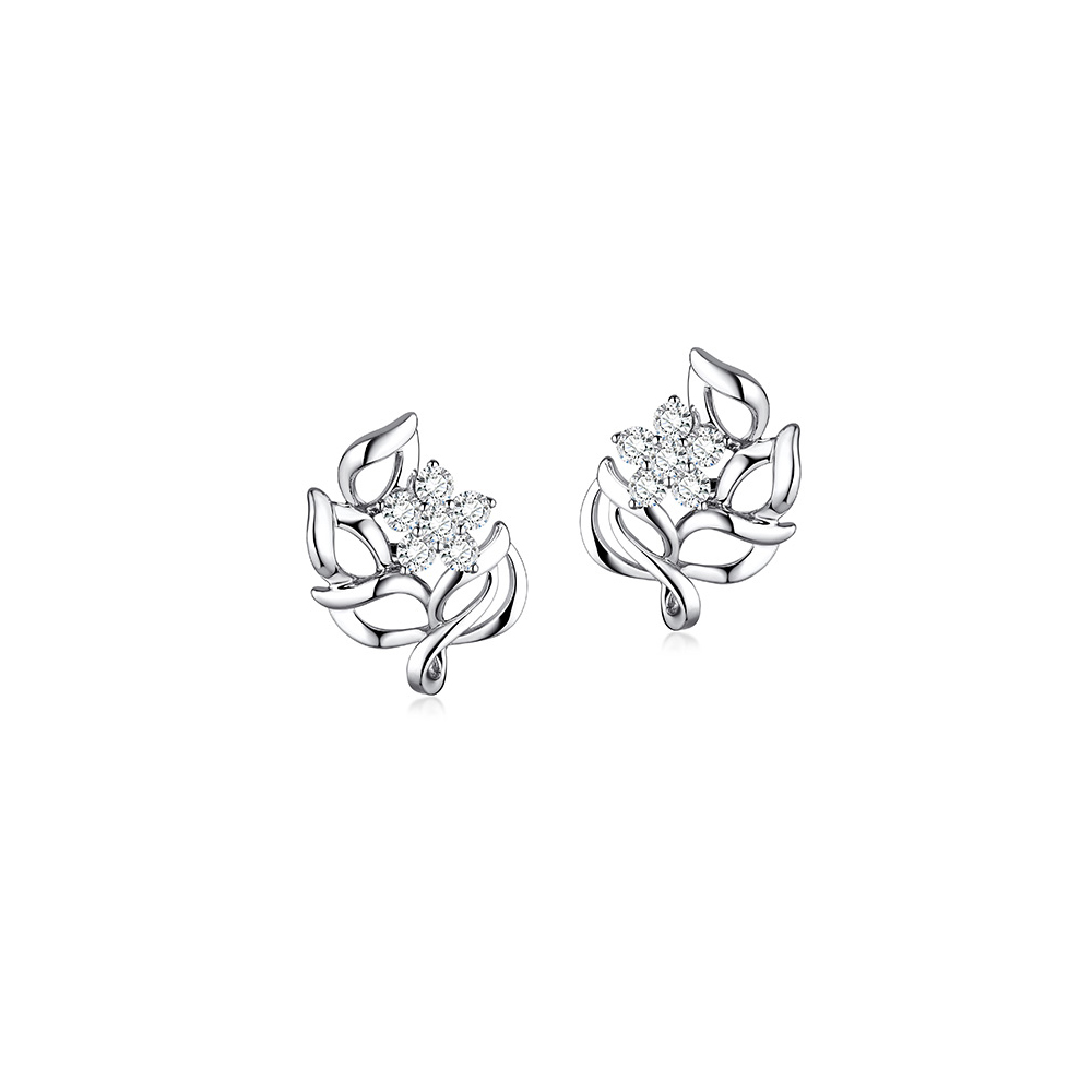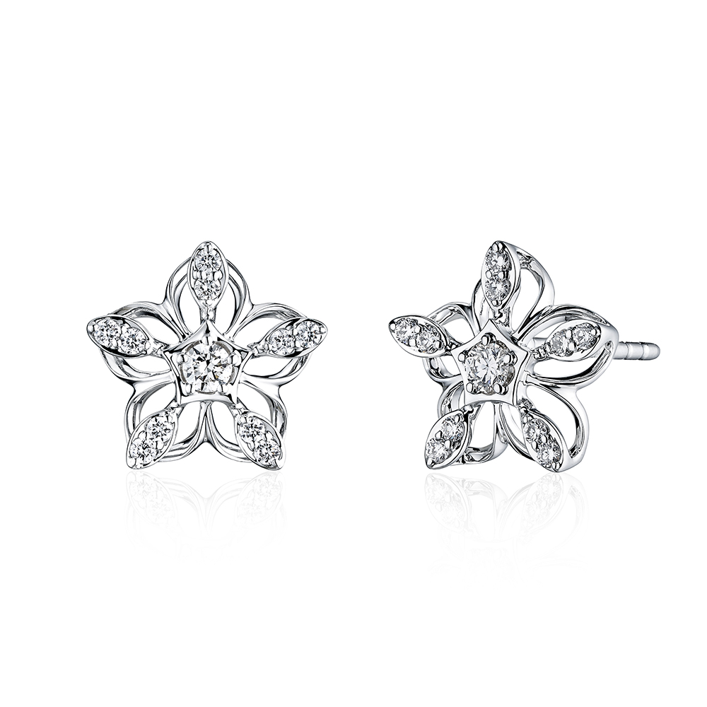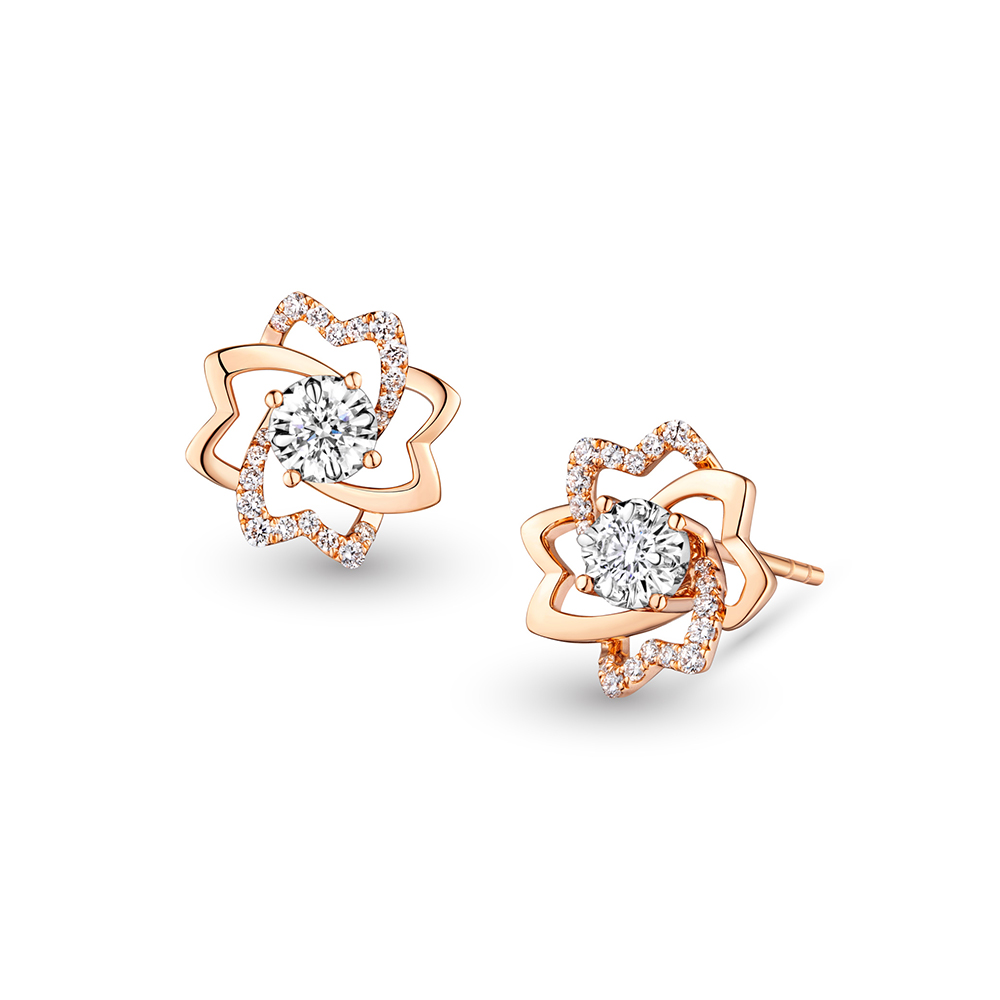 天天爱上新Tiny Tiny"花语心愿"18K金钻石耳钉