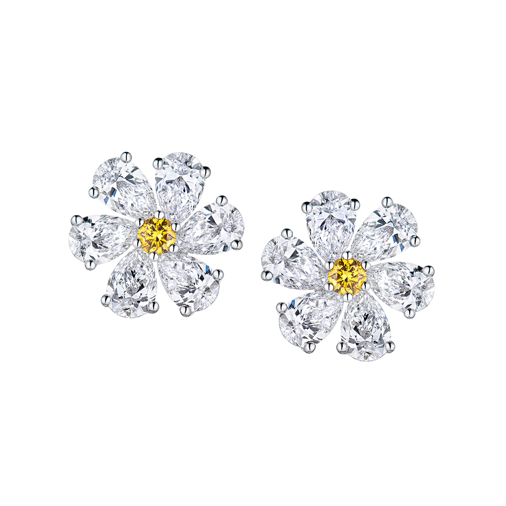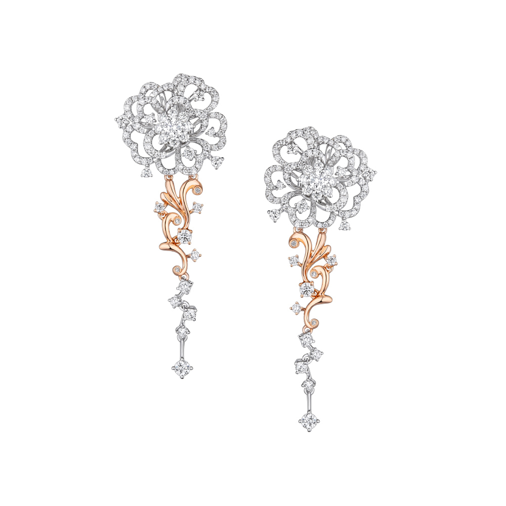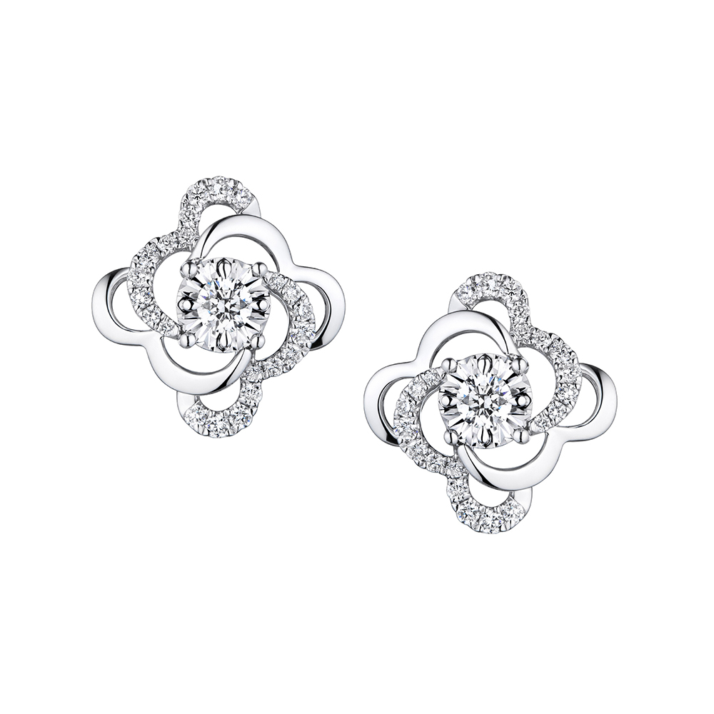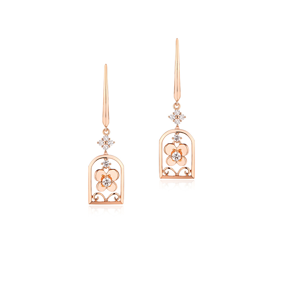天天爱上新Tiny Tiny"花语心愿"18K金钻石耳钉