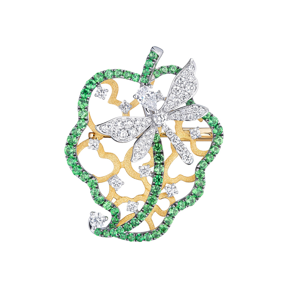 天天爱上新"蝶韵芳华"18K金和田玉吊坠