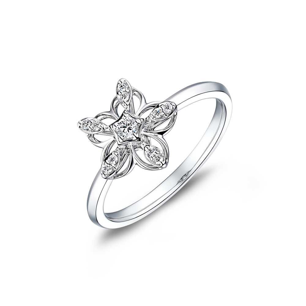 天天爱上新"蕾丝花" 18K金钻石戒指