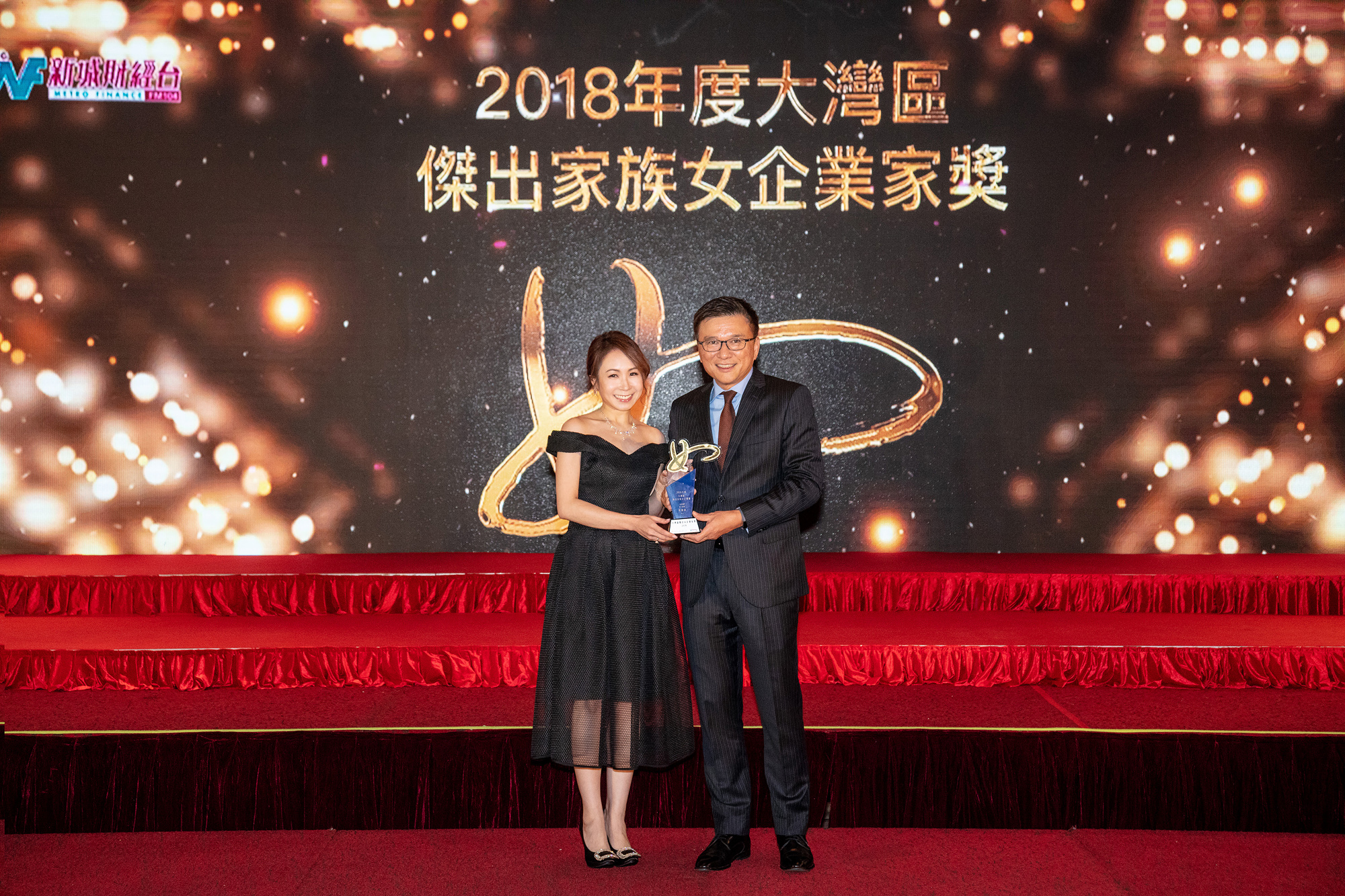 「大灣區傑出女企業家奬2018」是由香港中小企業聯合會及新城財經台合辦,香港貿發局及香港生產力促進局協辦,旨在嘉許對香港或大灣區的發展有貢獻的女企業家,並鼓勵更多年青女性發揮企業家精神,勇於開拓及發揚其事業才華,以促進粵港澳大灣區的經濟及社區的成長。