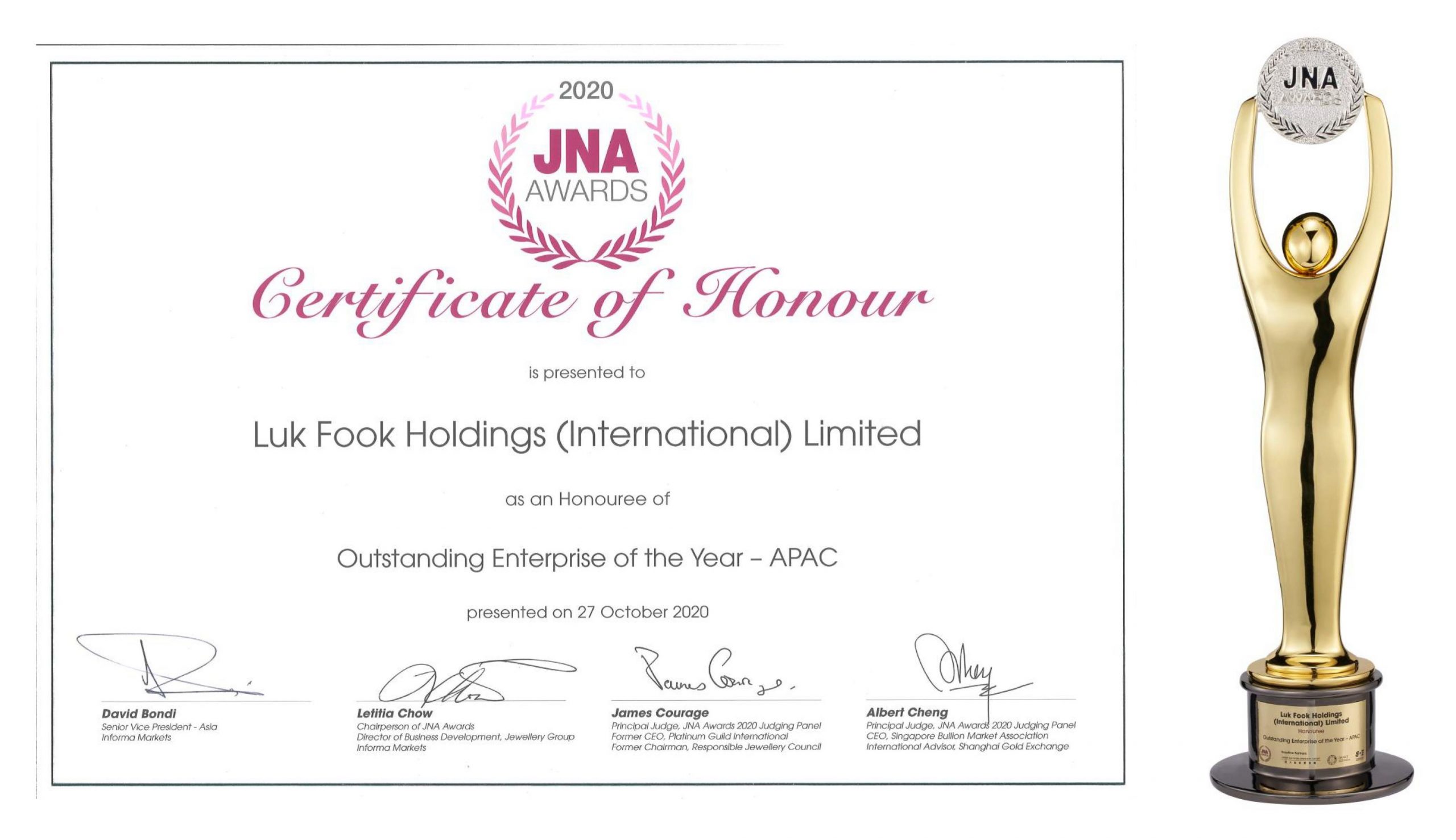 六福集團榮獲 JNA「年度傑出企業大獎(亞太地區)」入圍獎座及證書